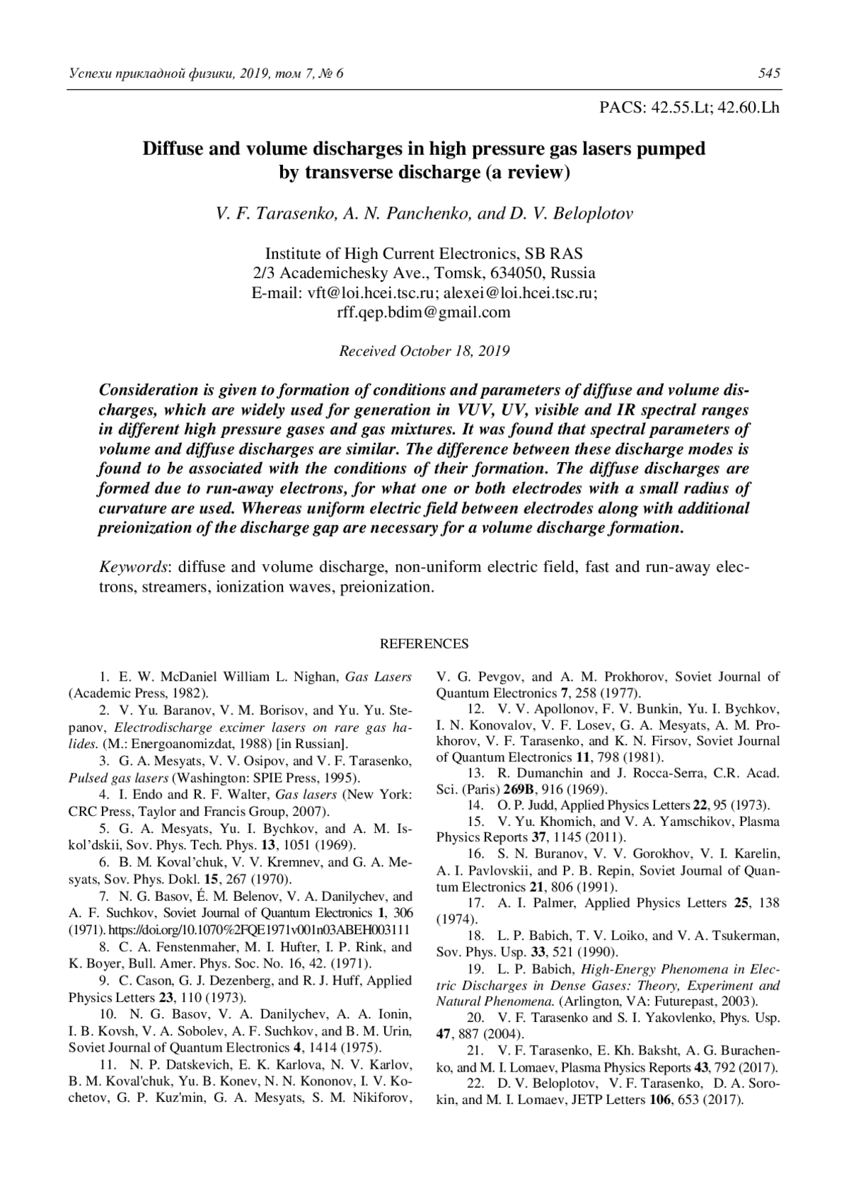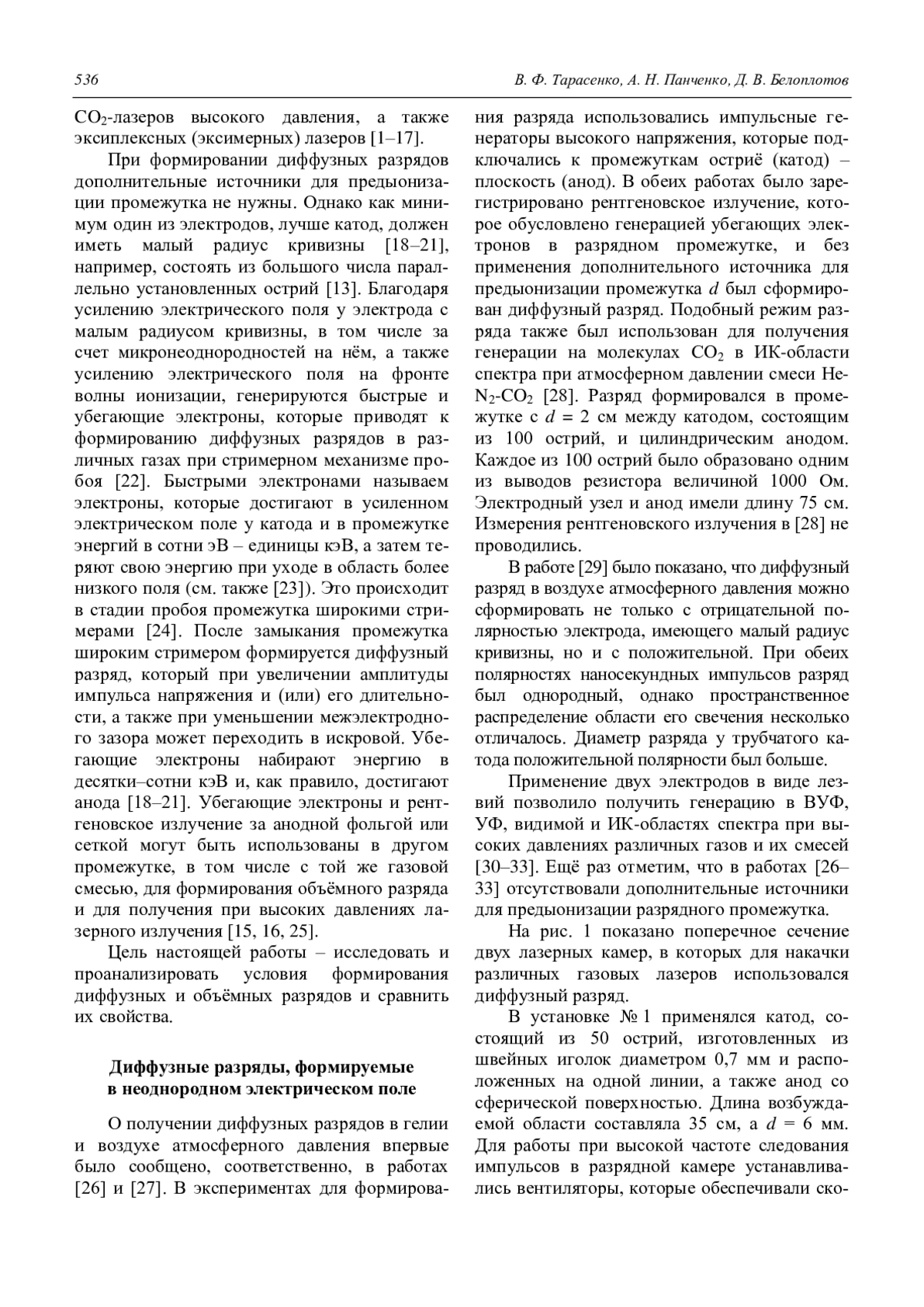 30. Панченко А. Н., Тарасенко В. Ф., Панченко Н. А. // Известия высших учебных заведений. Физика. 2017. Т. 60. № 8. С. 36.