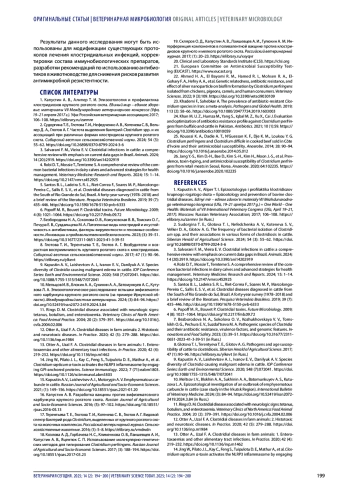 Заключение. Полученные результаты могут быть использованы для модификации существующих протоколов лечения клостридиозов, корректировки состава иммунобиологических препаратов, разработки рекомендаций по использованию антибиотиков в животноводстве для снижения рисков развития антимикробной резистентности.