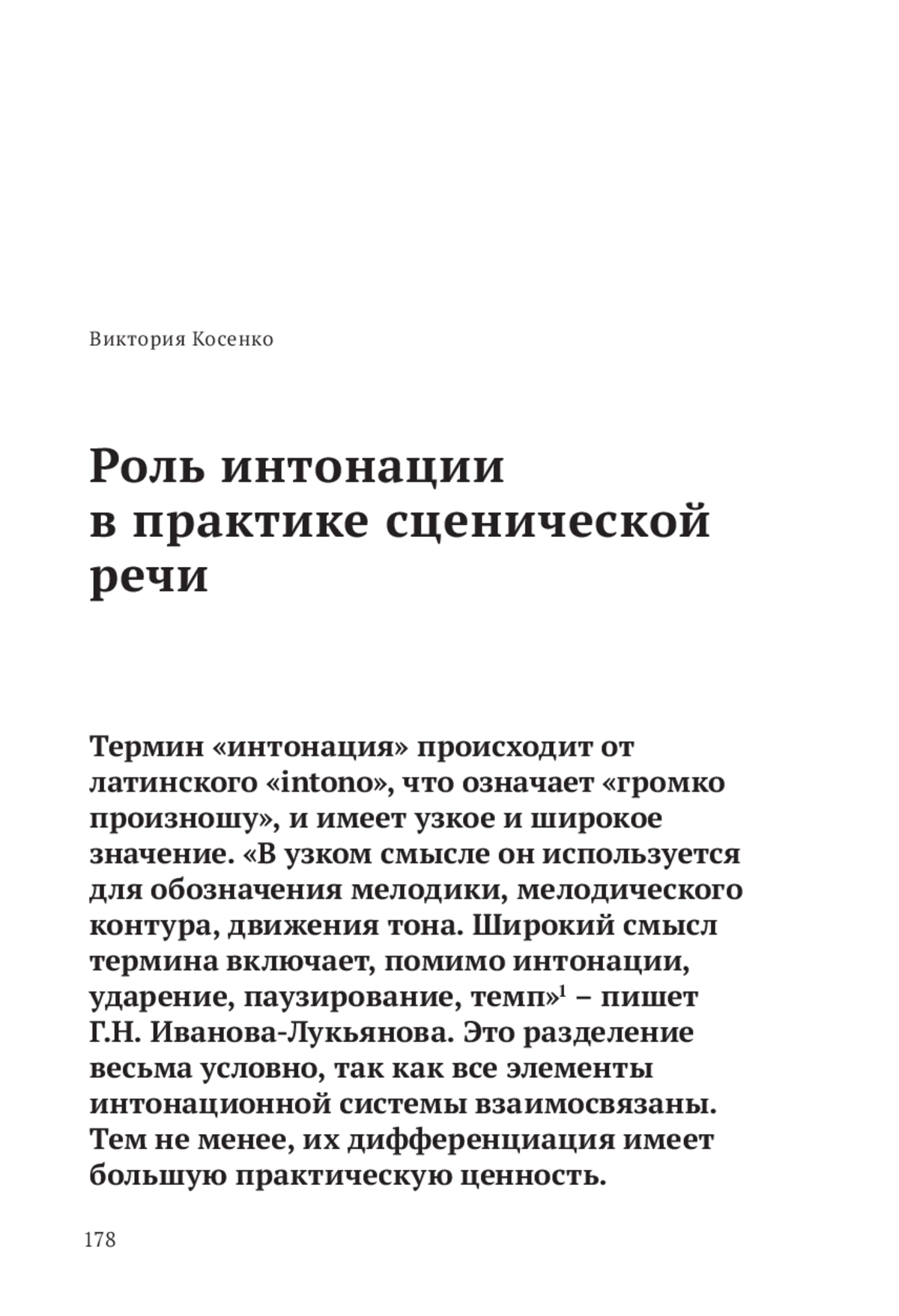 21. Галендеев В.Н. Об интонационно-логическом тренинге // Сценическая речь: прошлое и настоящее. Избр. труды каф. сцен. речи С.-Петерб. гос. акад. театр. искусства / Ред.- сост. Ю.А. Васильев. СПб.: СПбГАТИ, 2009. С. 175-183. С. 176.