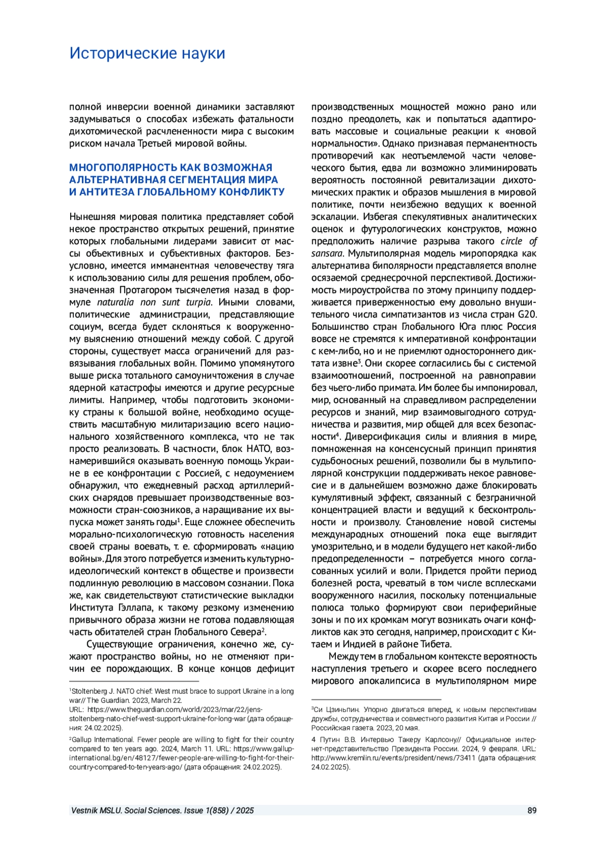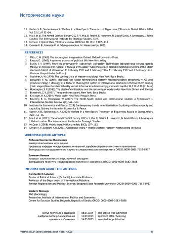 11. Kashin V. B., Sushentsov A. A. Warfare in a New Epoch: The return of Big Armies // Russia in Global Affairs. 2024. Vol. 22 (1). P. 32-56. EDN: YBFOTC