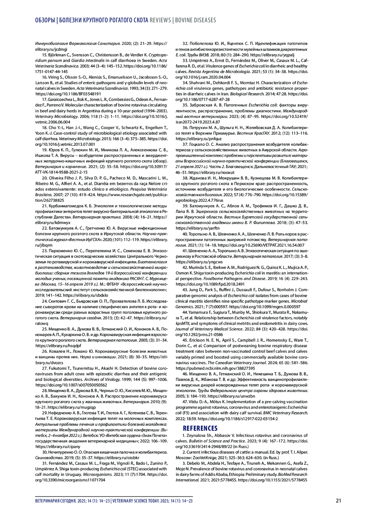 38. Жданова И. Н., Мокрушин В. В., Кузнецова М. В. Колибактериоз крупного рогатого скота в Пермском крае: распространенность, источники возбудителя и его биологические особенности. Сельскохозяйственная биология. 2022; 57 (4): 776-790. DOI: 10.15389/agrobiology.2022.4.776rus
