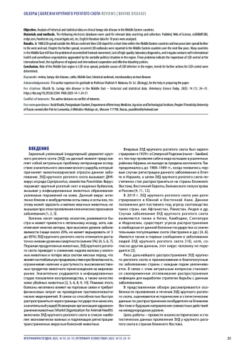 Ключевые фразы: заразный узелковый дерматит, крупный рогатый скот, Ближний Восток, историческая вспышка, трансграничные болезни животных