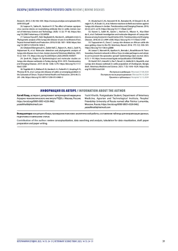 Заключение. Определена роль Ближневосточного региона в распространении возбудителя болезни, названы вероятные причины неблагополучия региона по данному заболеванию, сформулировано направление дальнейших действий в рамках борьбы с заразным узелковым дерматитом крупного рогатого скота.