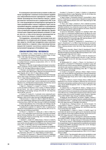 29. Матеу Э., Прьето С. Типы доступных вакцин против репродуктивно-респираторного синдрома свиней и ожидаемые результаты их применения. Эффективное животноводство. 2022; (1): 24-25.