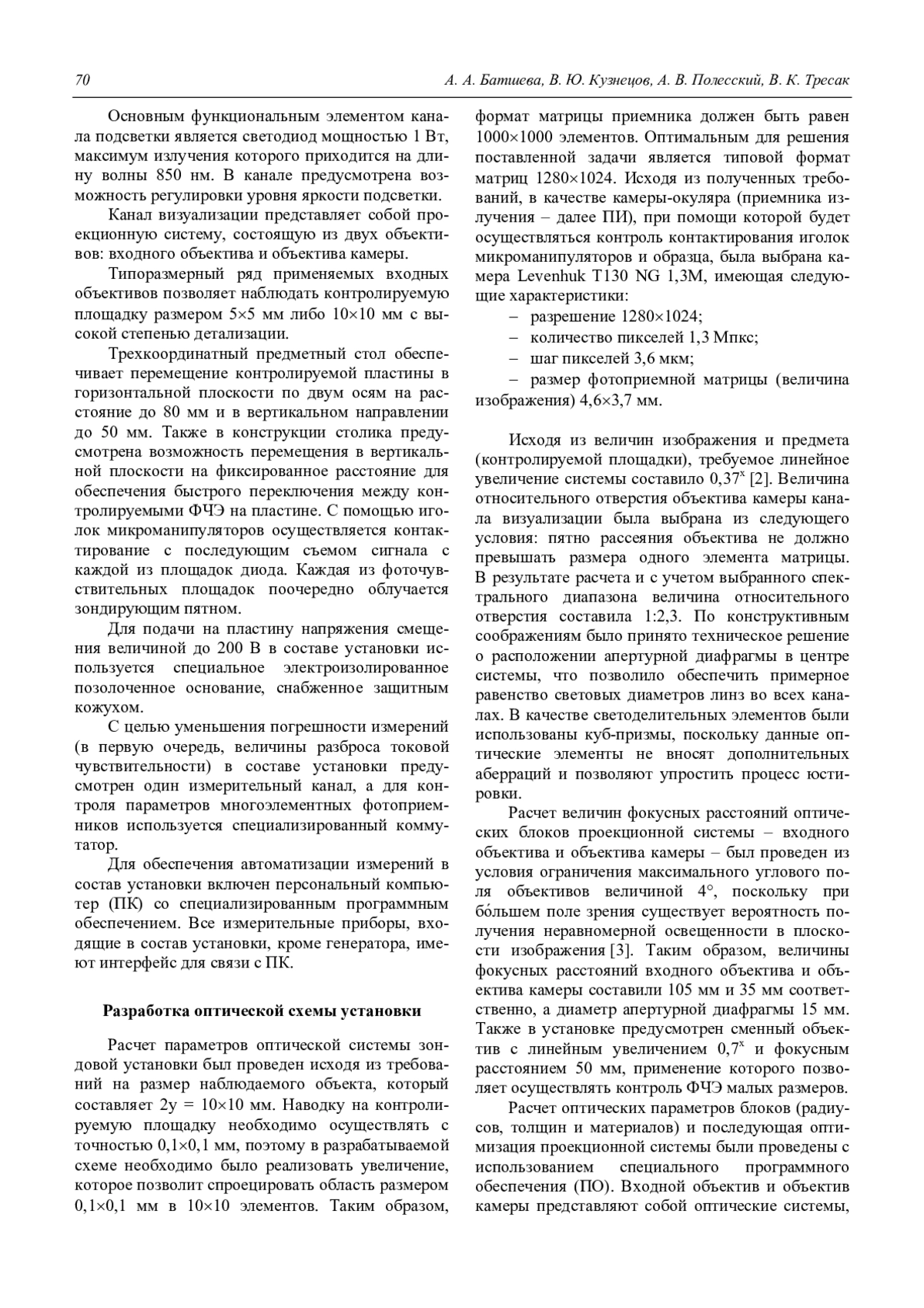 Батшева А. А., Кузнецов В. Ю., Полесский А. В., Тресак В. К. Универсальная зондовая установка для межоперационного контроля фотоэлектрических характеристик фотоприемников 68
