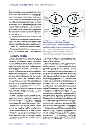 Введение. Высокопатогенный грипп птиц в настоящее время требует самого пристального внимания всего международного сообщества. Определение факторов, влияющих на передачу и репликацию вируса гриппа птиц у млекопитающих, а также анализ происходящих эволюционных процессов позволит предположить, какие вирусные линии будут иметь потенциал к преодолению видового барьера и инфицированию нетипичных хозяев, в том числе людей.