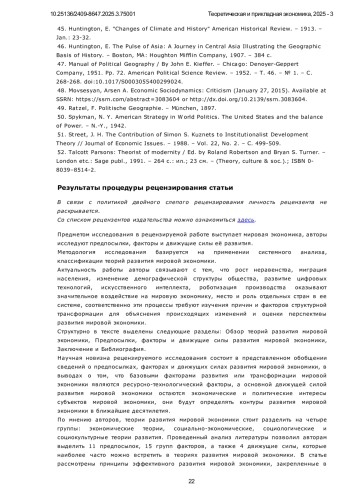 7. Глазьев, С. Ю. Глобальная трансформация через призму смены технологических и мирохозяйственных укладов // AlterEconomics. - 2022. - Т. 19. - № 1. - С. 93-115. -. DOI: 10.31063/AlterEconomics/2022.19-1.6 EDN: MULEYG