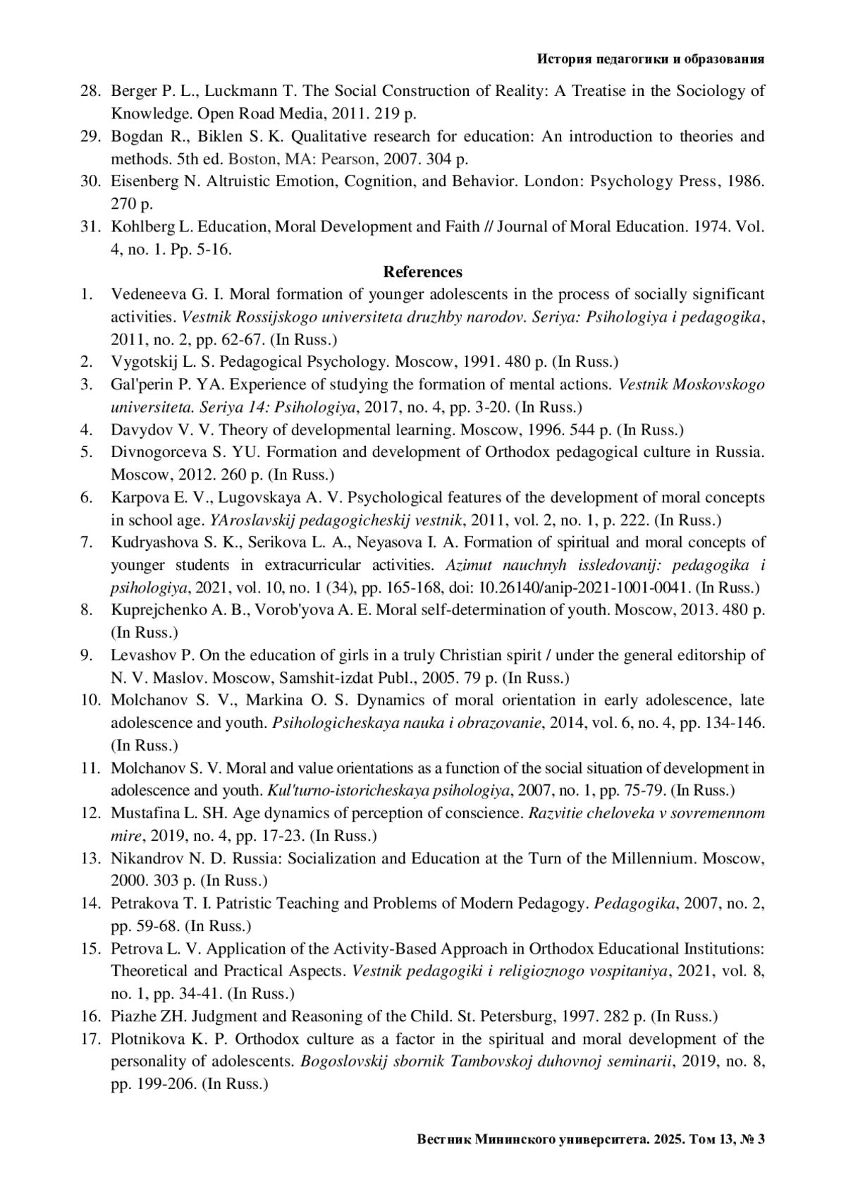 31. Kohlberg L. Education, Moral Development and Faith // Journal of Moral Education. 1974. Vol. 4, no. 1. Pp. 5-16.
