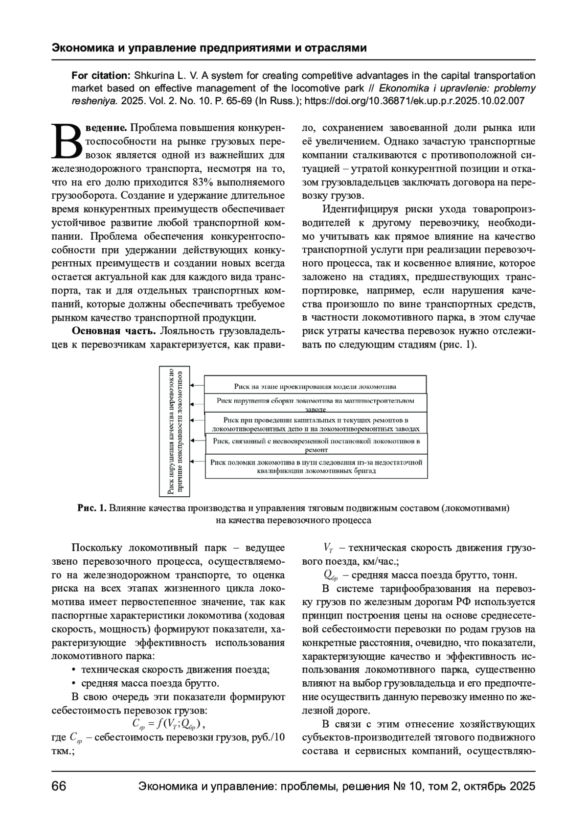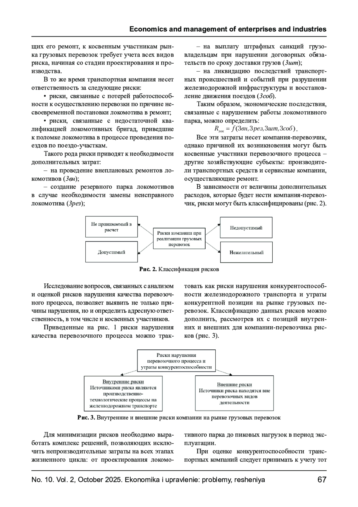 6. Кривцов В. Н., Шкурина Л. В. Системный анализ факторов риска нарушения качества транспортной продукции и транспортных условий для грузовладельцев // Транспортное дело России. 2021. № 2. С. 111-115. EDN: OWJEOY