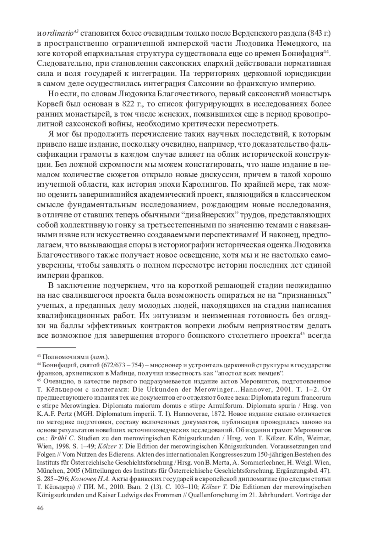 46. Koziol G. The Politics of Memory and Identity in Carolingian Royal Diplomas. The West Frankish Kingdom (840-987). Turnhout, 2012 (Utrecht Studies in Medieval Literacy, 19).