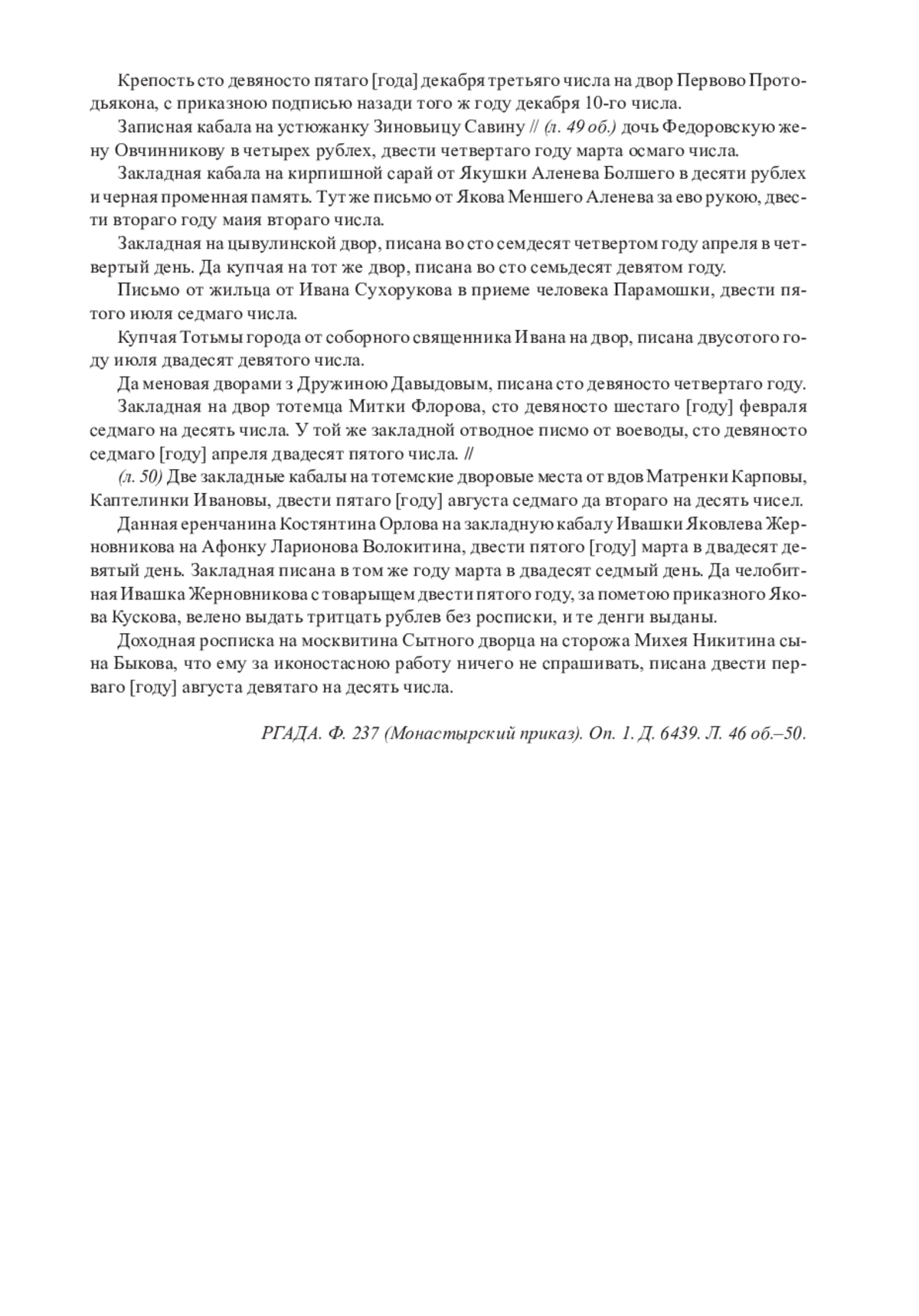 1. РГАДА. Ф. 237 (Монастырский приказ). Оп. 1. Д. 6439. Л. 46 об.-50.