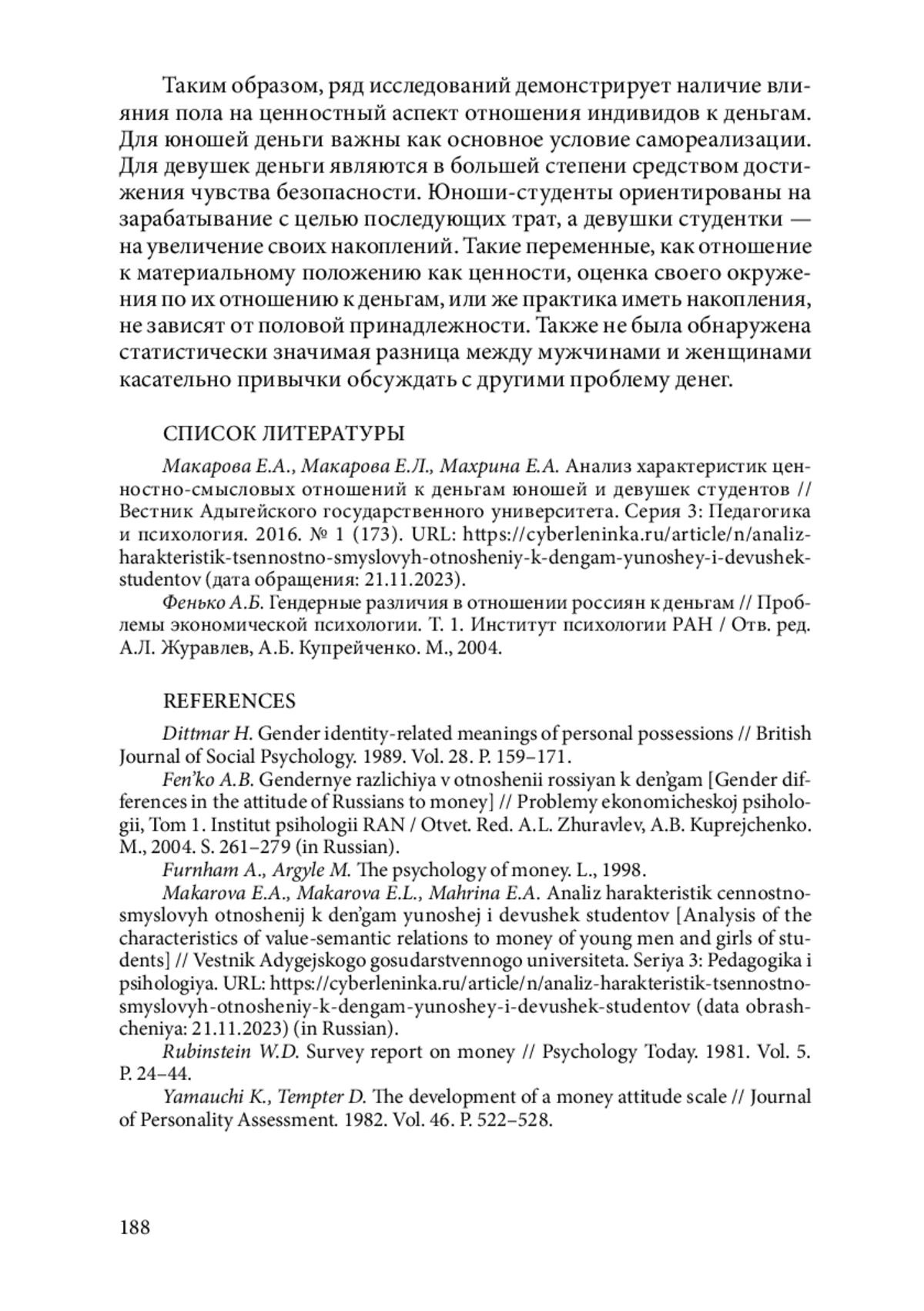 Статья: ЦЕННОСТНО-СМЫСЛОВОЕ ОТНОШЕНИЕ К ДЕНЬГАМ: ГЕНДЕРНЫЙ АСПЕКТ (2024)