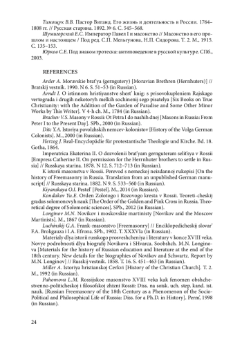 15. Пахомова Л.М. Российское масонство XVIII века как феномен общественно-политической и философской жизни России: Дисс. на соиск. уч. степ. канд. ист. наук. Пермь, 1998.