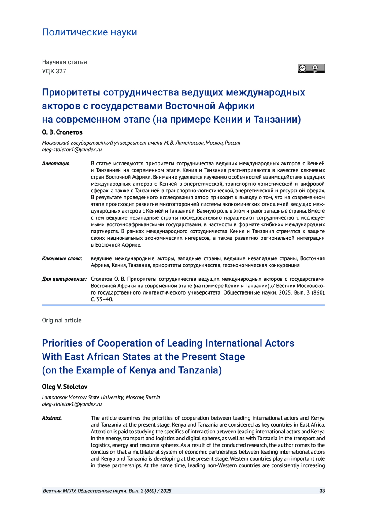 2. Nikolskaya M. V., Nikulin M. A., Ralafiarindaza M. N. An integrated East Africa: a resilience perspective // Polis. Political Studies. 2024. № 4. P. 71-88.