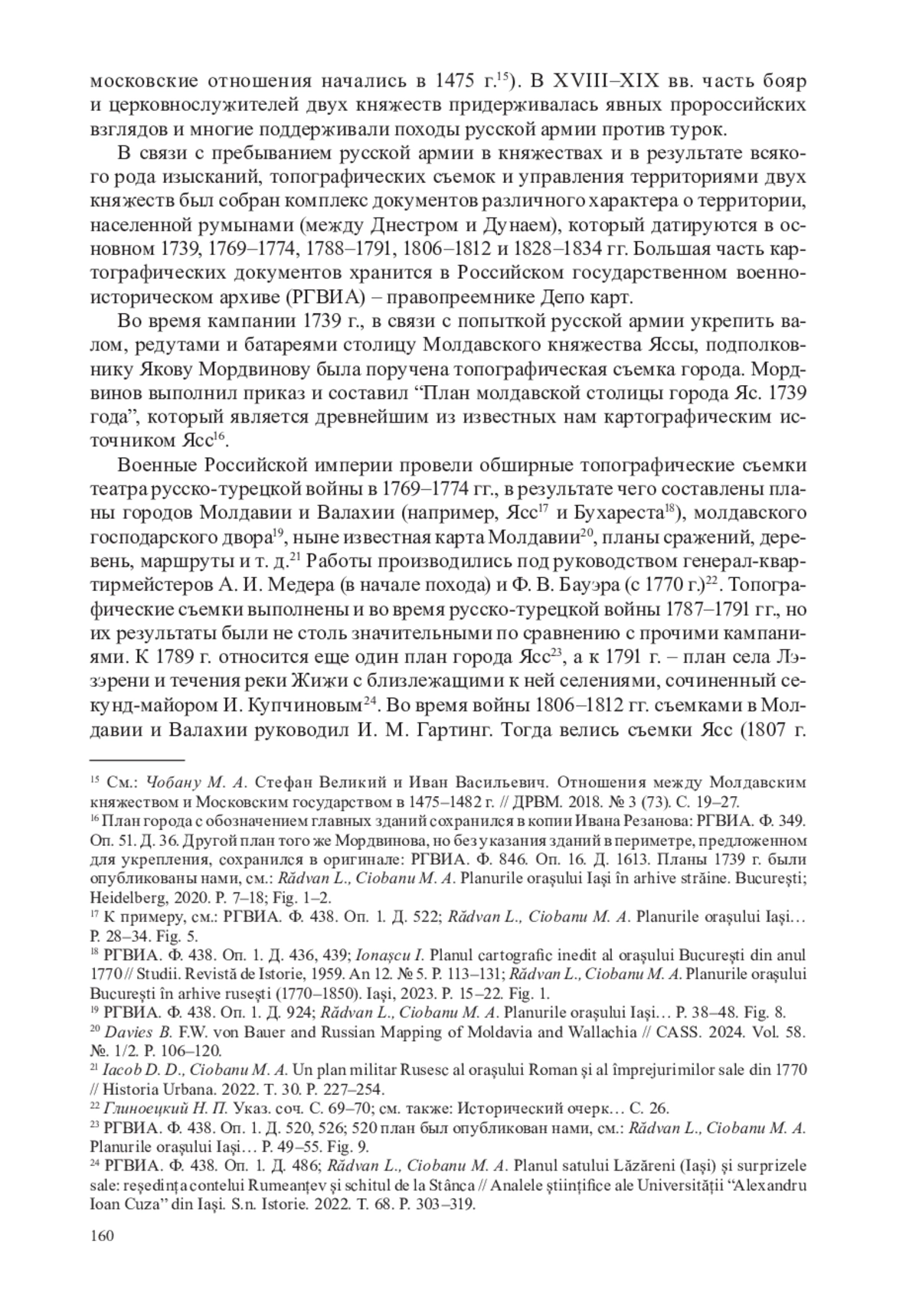 24. Iacob D.D., Ciobanu M.A. Un plan militar Rusesc al. oraşului Roman şi al împrejurimilor sale din 1770 // Historia Urbana. 2022. T. 30. P. 227-254.