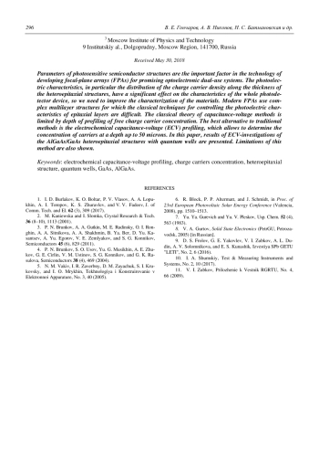 1. Burlakov I. D., Boltar K. O., Vlasov P. V., Lopukhin A. A., Toropov A. I., Zhuravlev K. S., Fadeev V. V. // Journal of Com-munications Technology and Electronics. 2017. Vol. 62. No. 3. P. 309.