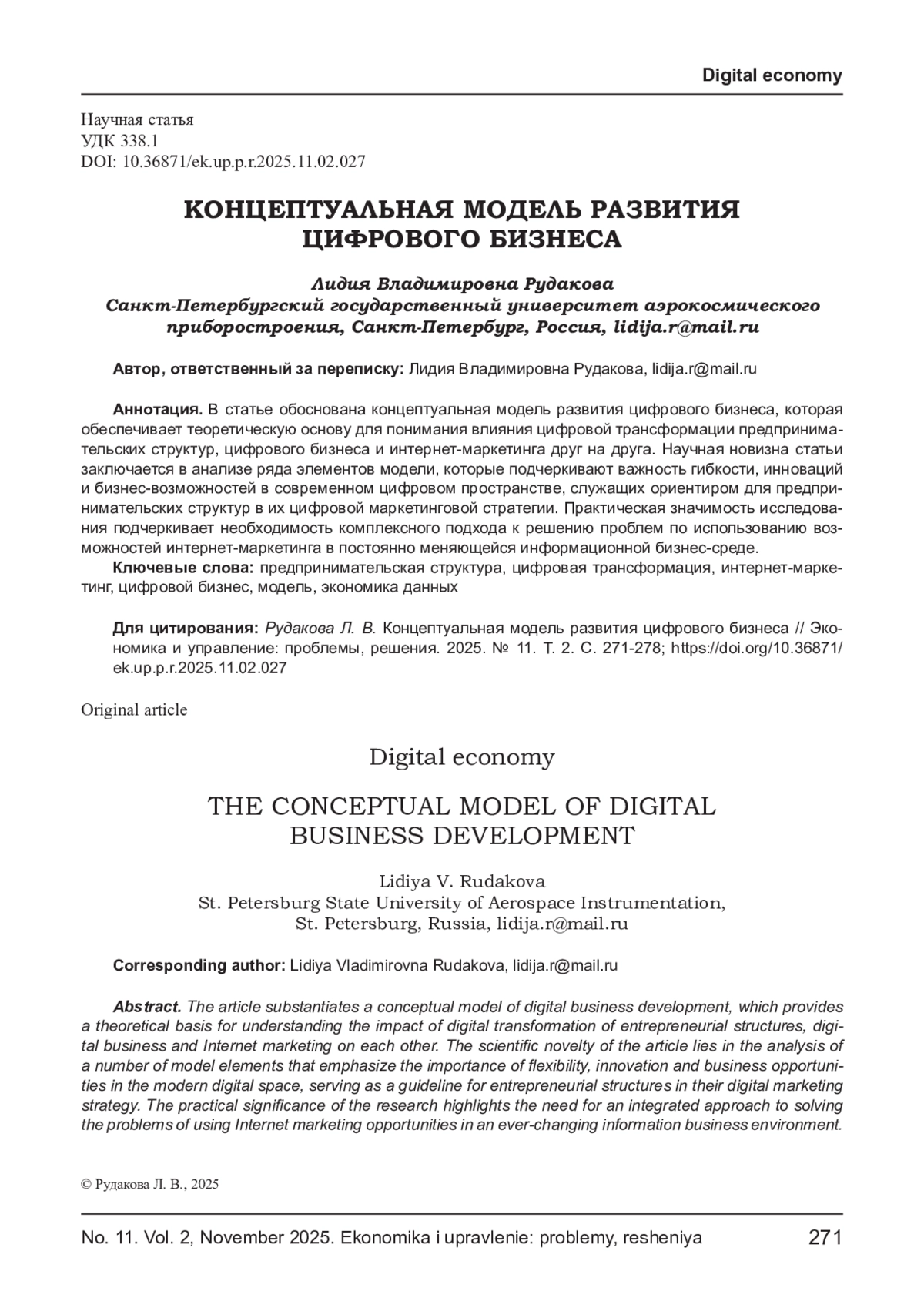 10. Рудакова Л. В. Учет аспектов концепции интегрированного устойчивого управления предпринимательскими структурами // Учет и контроль. - 2025. - № 5. - С. 59-68. EDN: RGVWBT