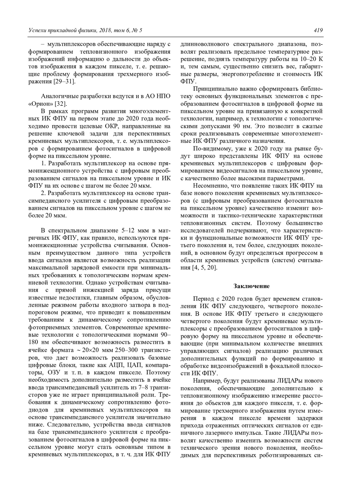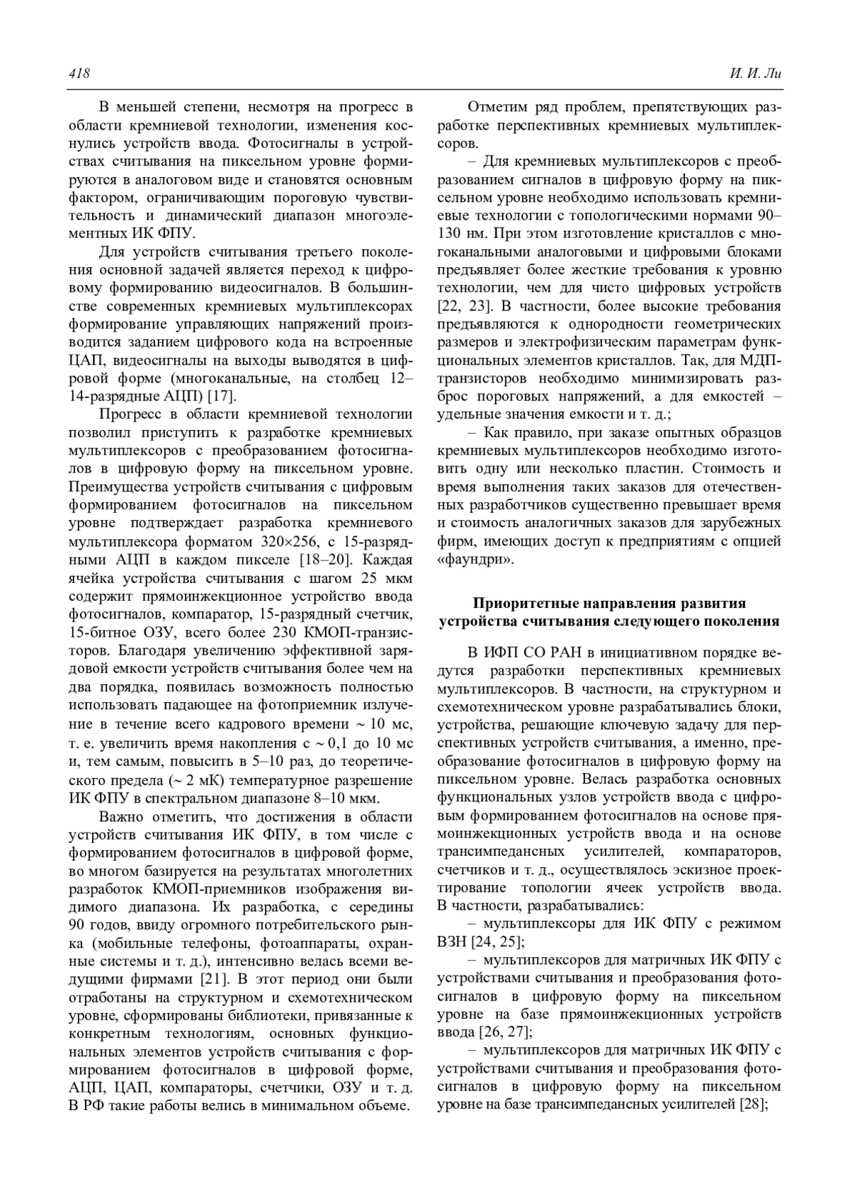 Ли И. И. Перспективные направления развития устройств считывания многоэлементных ИК фотоприемных устройств (обзор) 417