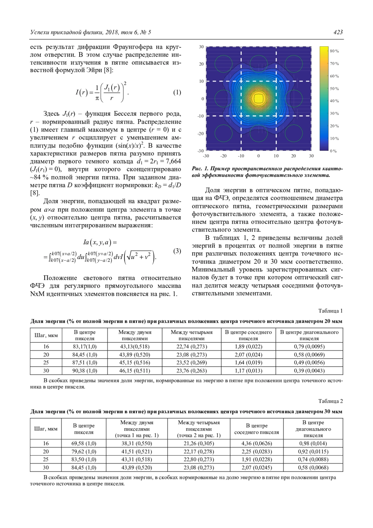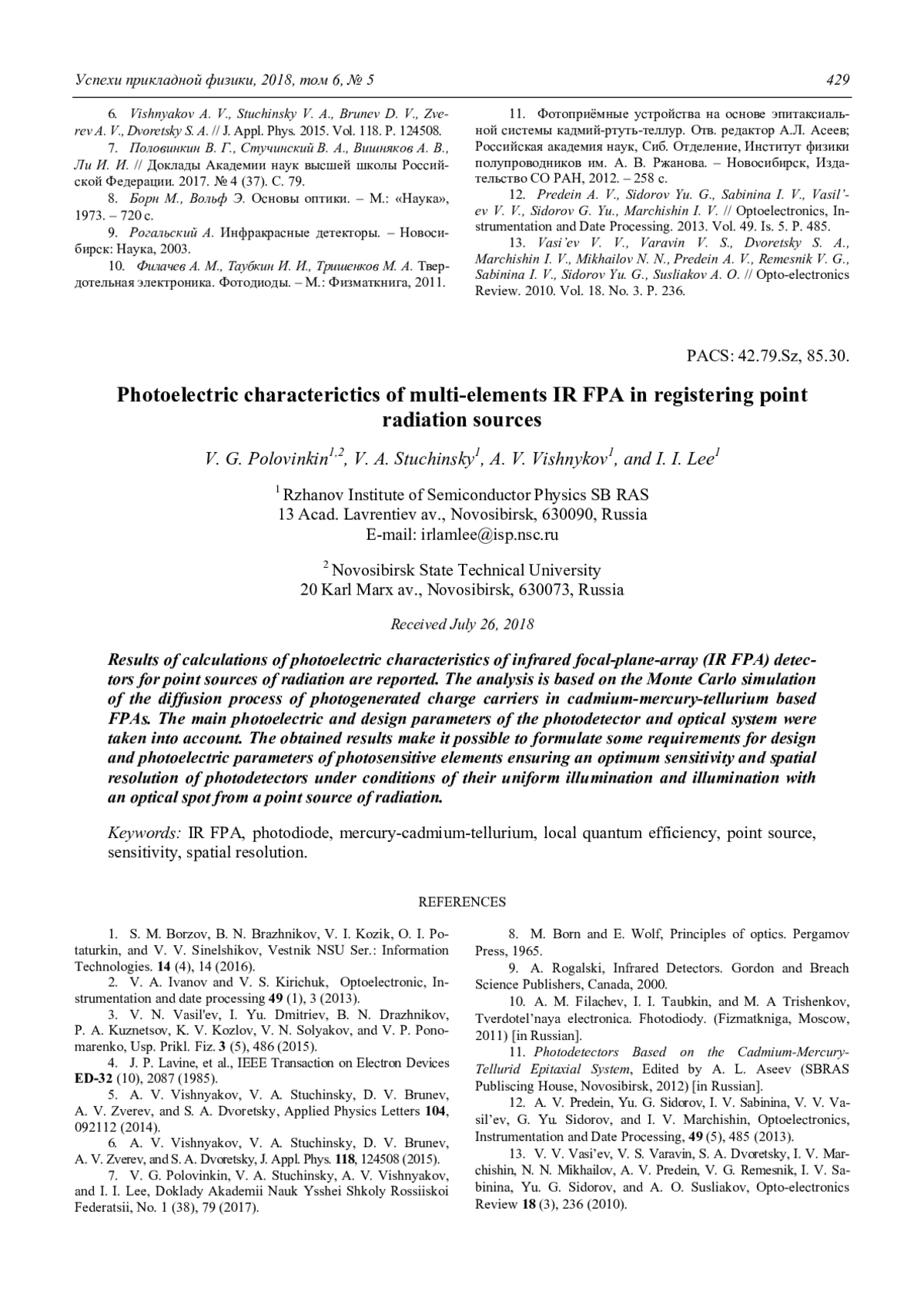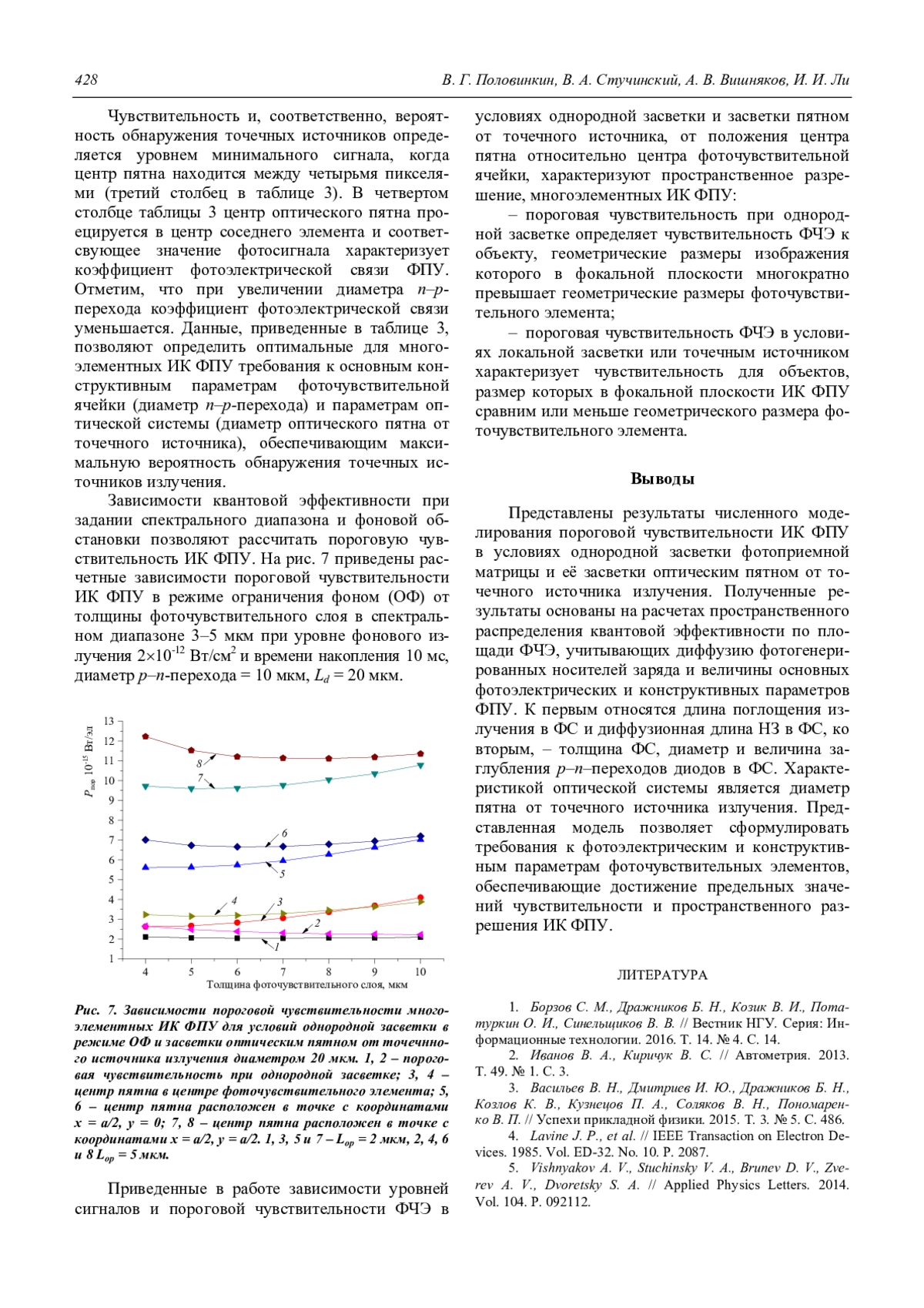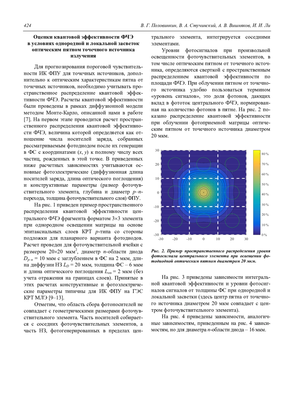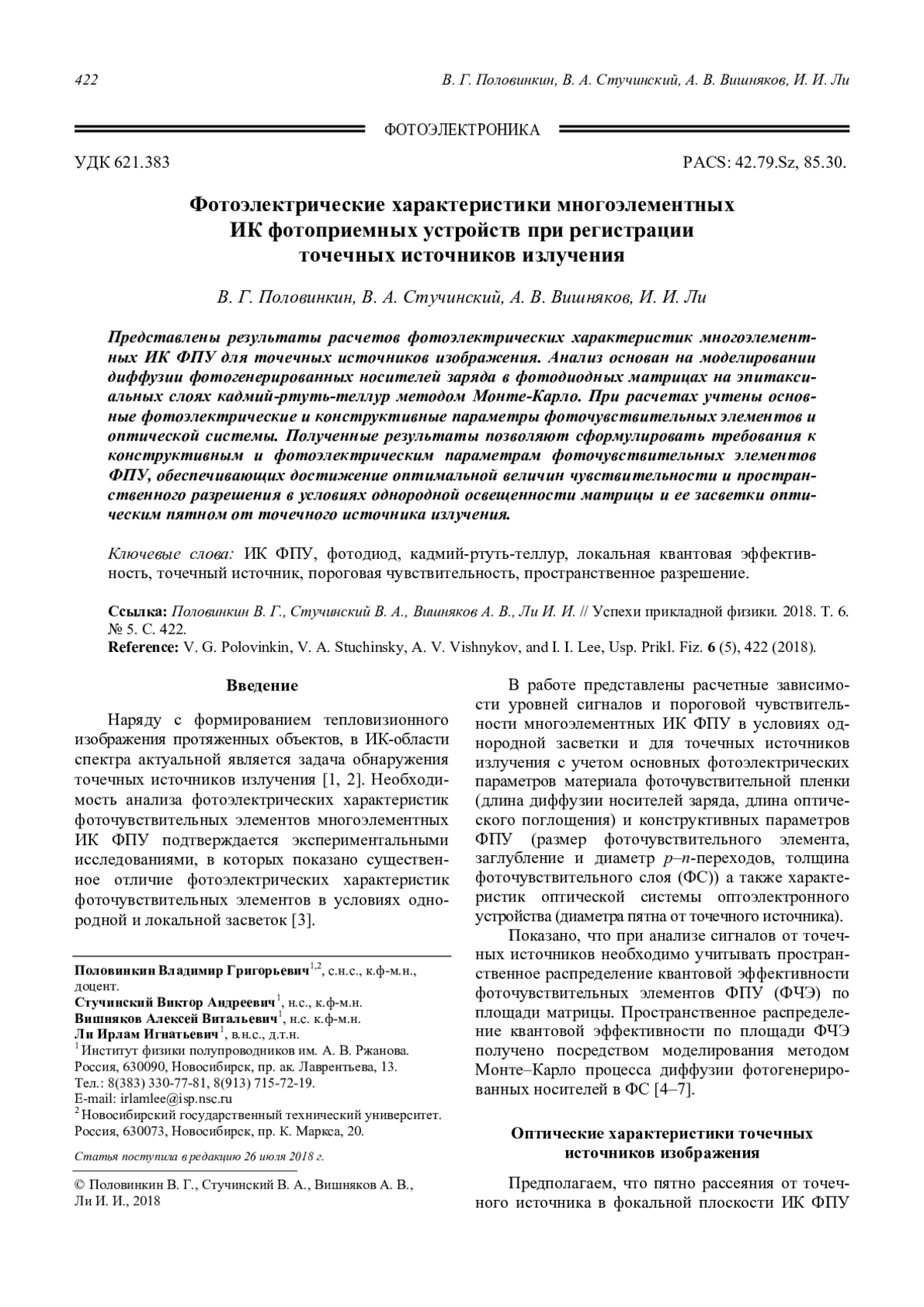 Половинкин В. Г., Стучинский В. А., Вишняков А. В., Ли И. И. Фотоэлектрические характеристики многоэлементных ИК фотоприемных устройств при регистрации точечных источников излучения 422