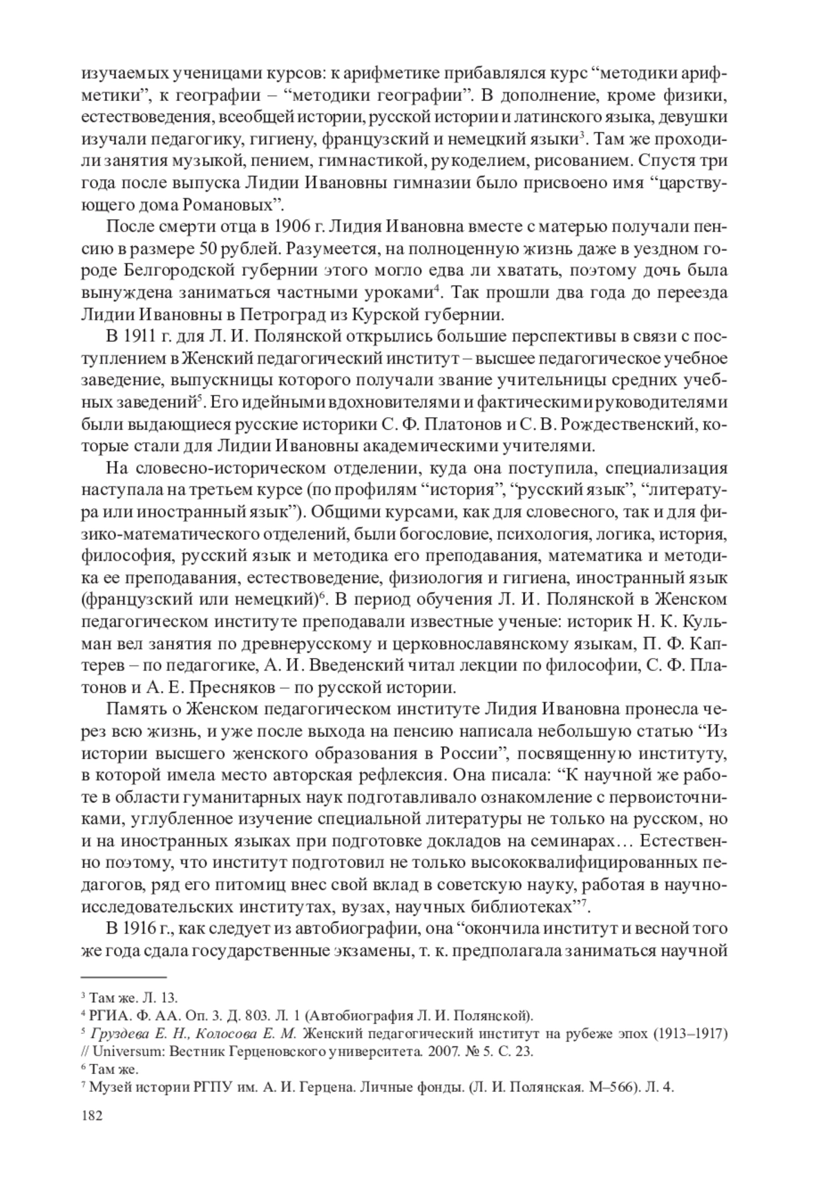 3. Груздева Е.Н., Колосова Е.М. Женский педагогический институт на рубеже эпох (1913-1917) // Universum: Вестник Герценовского университета. 2007. № 5. С. 23. EDN: NWZSXN