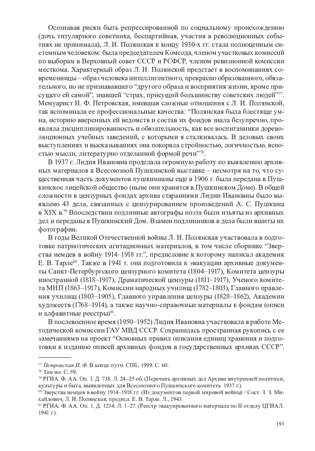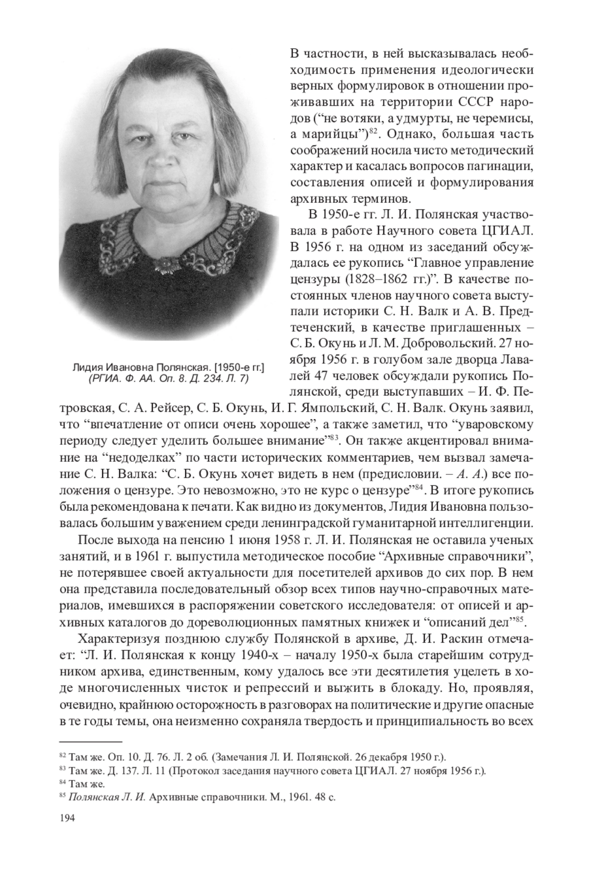 10. Полянская Л. И. Первые шаги // Советские архивы. 1968. № 1. С. 39.