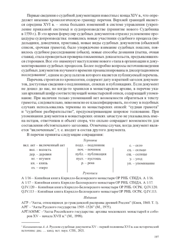 2. Калашникова А. А. Русские судебные документы XV - первой половины XVI в. как исторический источник: дис.. канд. ист. наук. СПб., 2021.