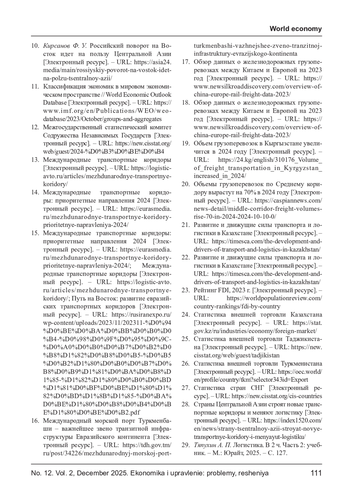 14. Международные транспортные коридоры: приоритетные направления 2024 [Электронный ресурс]. - URL: https://eurasmedia.ru/mezhdunarodnye-transportnye-koridoryprioritetnye-napravleniya-2024/.