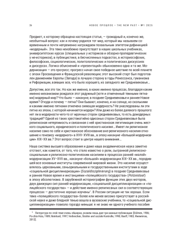 Выдвигается и обосновывается тезис, согласно которому процессы ранней европейской модернизации (то есть период накануне современности) были неразрывно связаны с насилием, выражением которого стала, в частности, «социальная дисциплинаризация». Приводятся характерные примеры из истории провинции Артуа во Франции в XV в. (на основе исследований Р. Мюшамбле) и польской деревни в XVII–XVIII вв. (на основе исследований М. А. Корзо), подтверждающие, что запреты, ограничения и репрессии «социальной дисциплинаризации» получали религиозное обоснование. Эти мрачные стороны ранней модернизации оставили отпечаток на развитии Европы в XIX–XX вв. Подчеркивается, что, во-первых, репрессивные тенденции в культуре раннего модерна развернулись уже в зрелое Средневековье; во-вторых, они, как представляется, коррелировали со специфически католической, «августиновской» системой представлений о человеке (антропологией); в-третьих, они не связаны с переходом к «раннему капитализму», происходя в зоне и первичной (Франция, Нидерланды), и вторичной (Польша) модернизации, потому что «социальная дисциплинаризация» предстает как процесс, имманентно связанный с развертыванием заложенных в «латинском» христианстве собственно религиозных начал