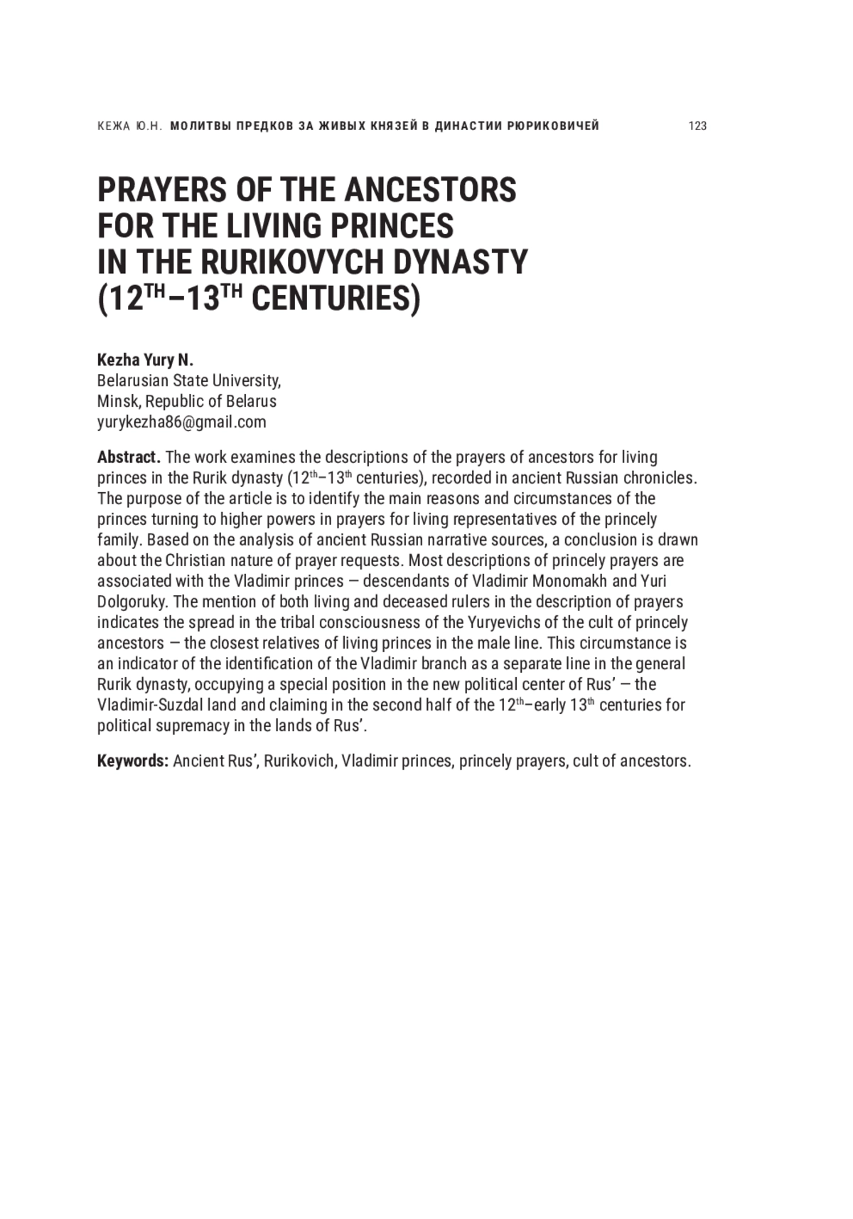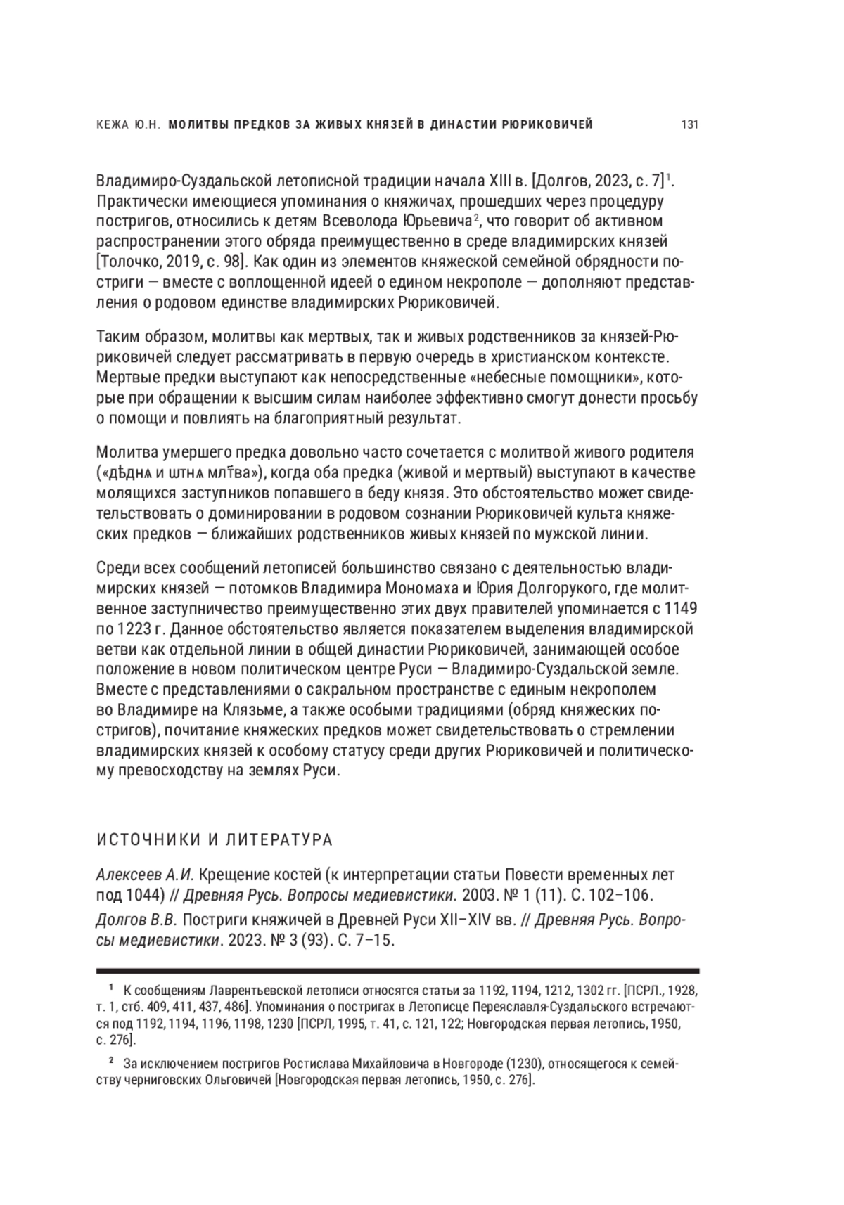 КЕЖА Ю. Н. МОЛИТВЫ ПРЕДКОВ ЗА ЖИВЫХ КНЯЗЕЙ В ДИНАСТИИ РЮРИКОВИЧЕЙ (XII-XIII ВВ.) // НОВОЕ ПРОШЛОЕ. 2025. № 1