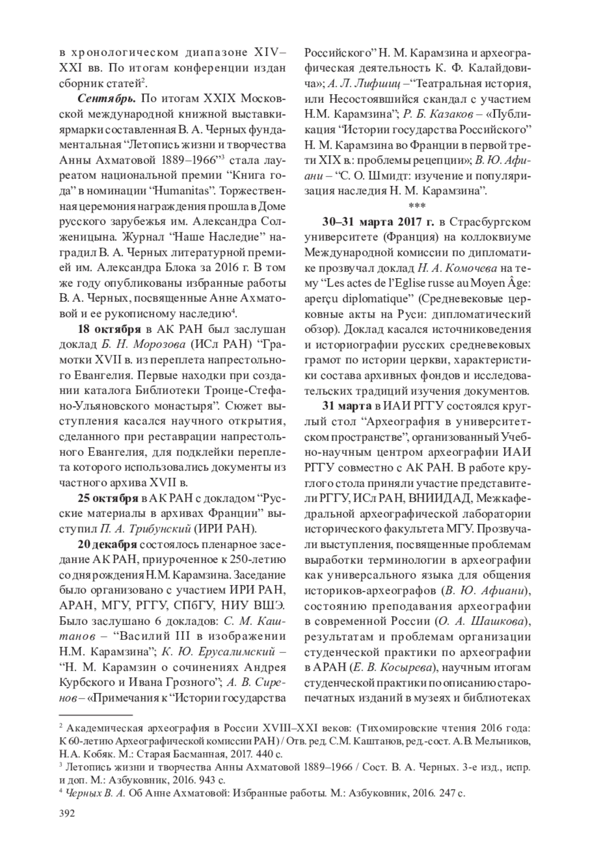 10. Туманик Е. Н. Состоялось Всероссийское совещание Археографической комиссии РАН // Гуманитарные науки в Сибири. 2019. Т. 26. № 3. С. 110-111. EDN: PWMOSV