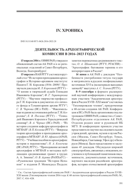 27. Муравьева Н. А., Романова Е. А. Методические рекомендации по публикации архивных документов в печатном виде: к выходу в свет // Отечественные архивы. 2023. № 3. С. 31-38.