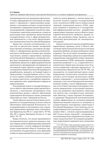 2. Сидоренко А. В., Махина С. Н. Обеспечение транспортной безопасности в современном понимании // Проблемы правоохранительной деятельности. 2018. № 4. С. 70-73. URL: https://cyberleninka.ru/article/n/obespechenie-transportnoy-bezopas nosti-v-sovremennom-ponimanii/viewer. EDN: YRORFZ