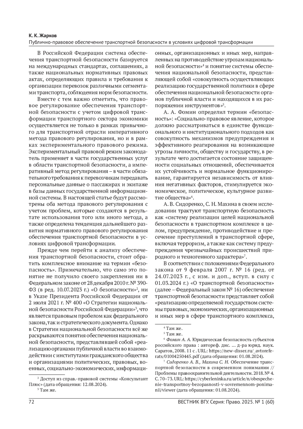 3. Фомин А. А. Юридическая безопасность субъектов российского права: автореф. дис.. д-ра юрид. наук. Саратов, 2008. С. 11. URL: https://new-disser.ru/_avtoreferats/01004250445.pdf. EDN: ZNLBBN