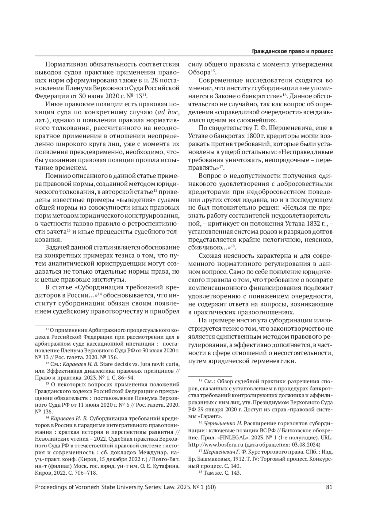 13. Чернышенко Н. Расширение горизонтов субординации: ключевые позиции ВС РФ // Банковское обозрение. Приложение “FINLEGAL”. 2023. № 1 (I-е полугодие). URL: http://www.bosfera.ru.