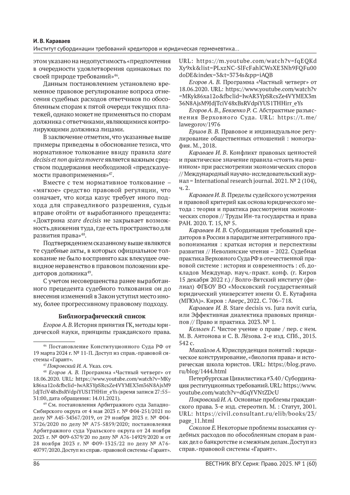 7. Караваев И. В. Stare decisis vs. Jura novit curia, или Эффективная диалектика правовых принципов // Право и практика. 2023. № 1. EDN: GFRBJC