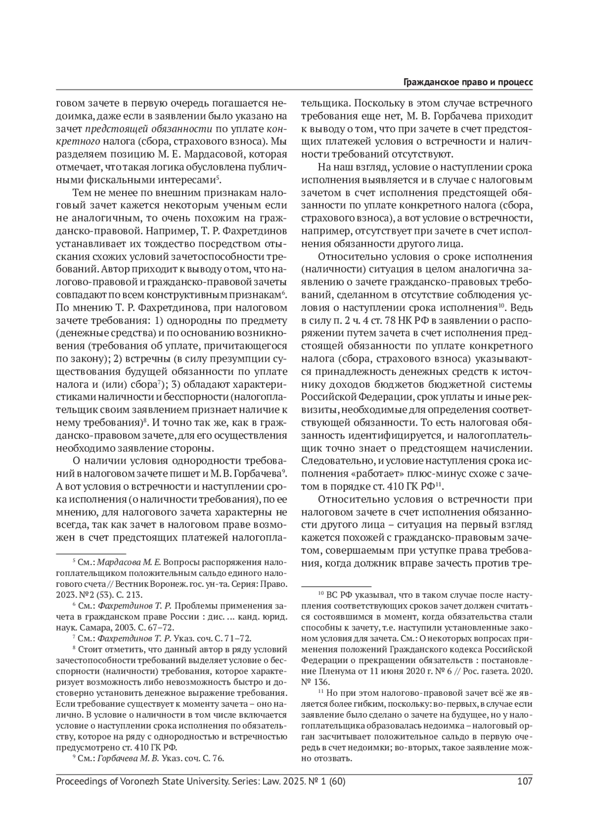 3. Горбачева М. В. Сфера применения зачета // Сиб. юрид. вестник. 2010. № 2 (49). С. 68-78.