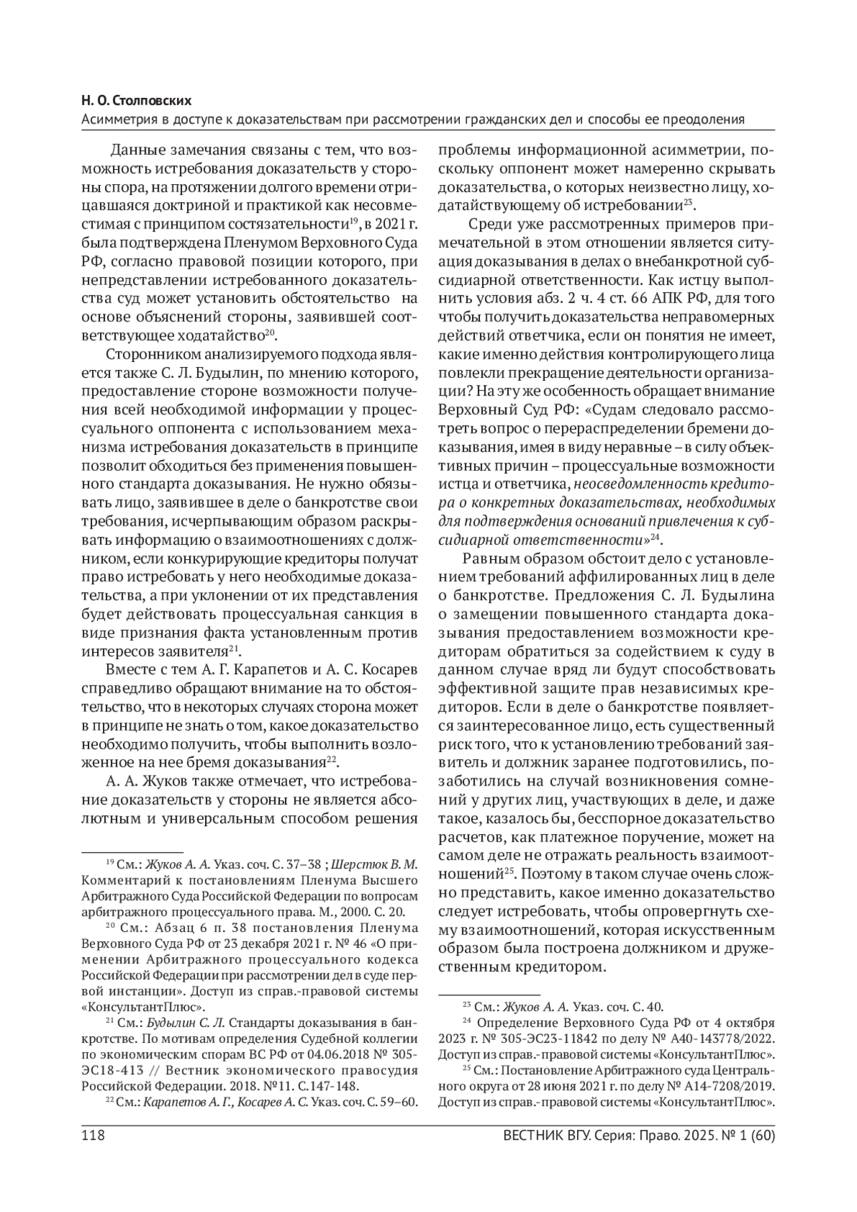 4. Будылин С. Л. Стандарты доказывания в банкротстве: по мотивам определения Судебной коллегии по экономическим спорам ВС РФ от 04.06.2018 № 305-ЭС18-413 // Вестник экономического правосудия Российской Федерации. 2018. № 11. С. 130-157.