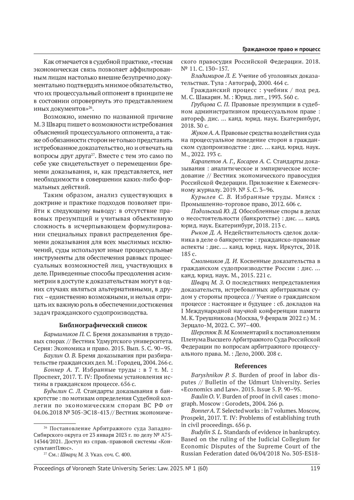 1. Барышников П. С. Бремя доказывания в трудовых спорах // Вестник Удмуртского университета. Серия: Экономика и право. 2015. Вып. 5. С. 90-95.
