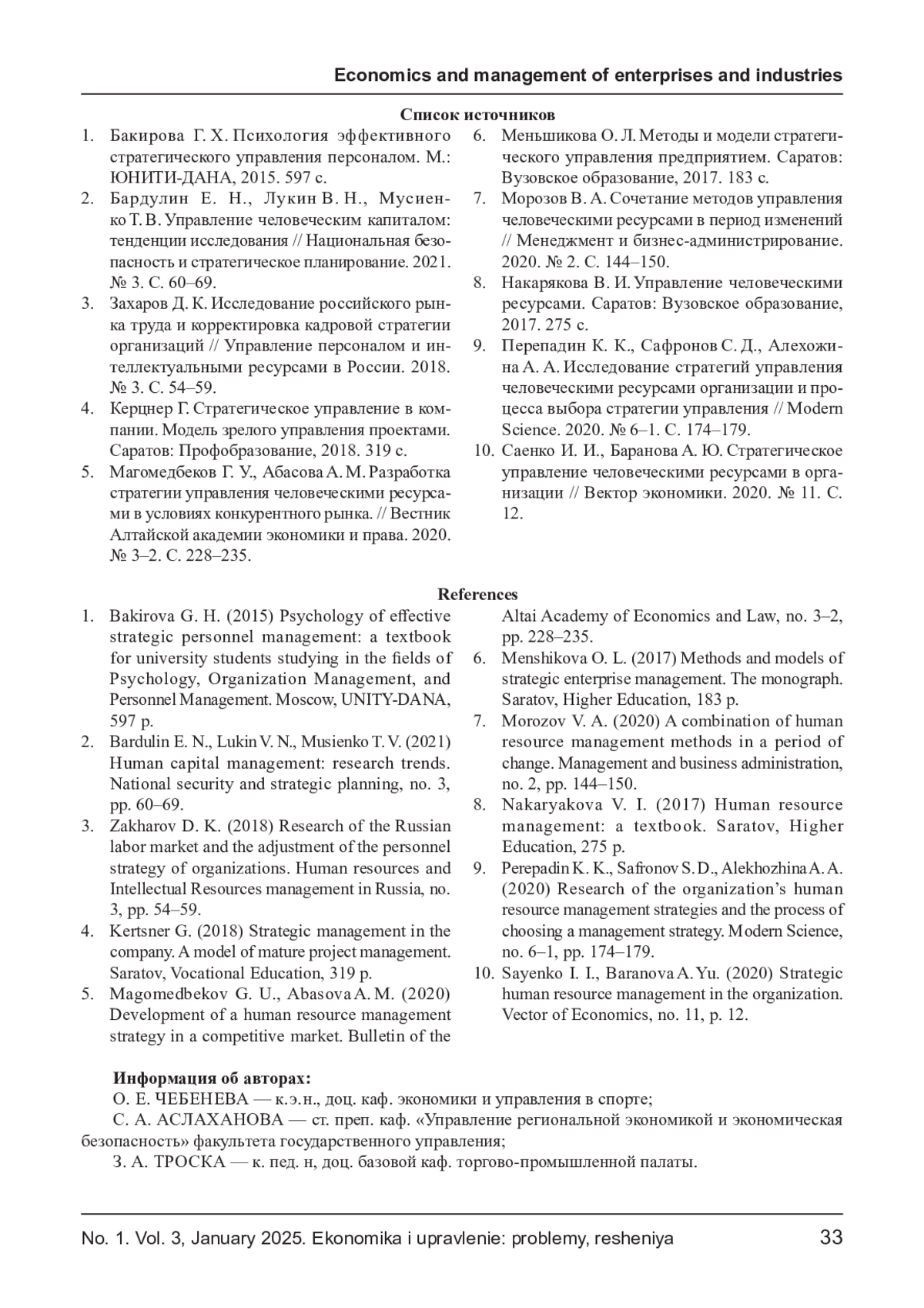 2. Бардулин Е. Н., Лукин В. Н., Мусиенко Т. В. Управление человеческим капиталом: тенденции исследования // Национальная безопасность и стратегическое планирование. 2021.№ 3. С. 60-69. EDN: BVGWOO
