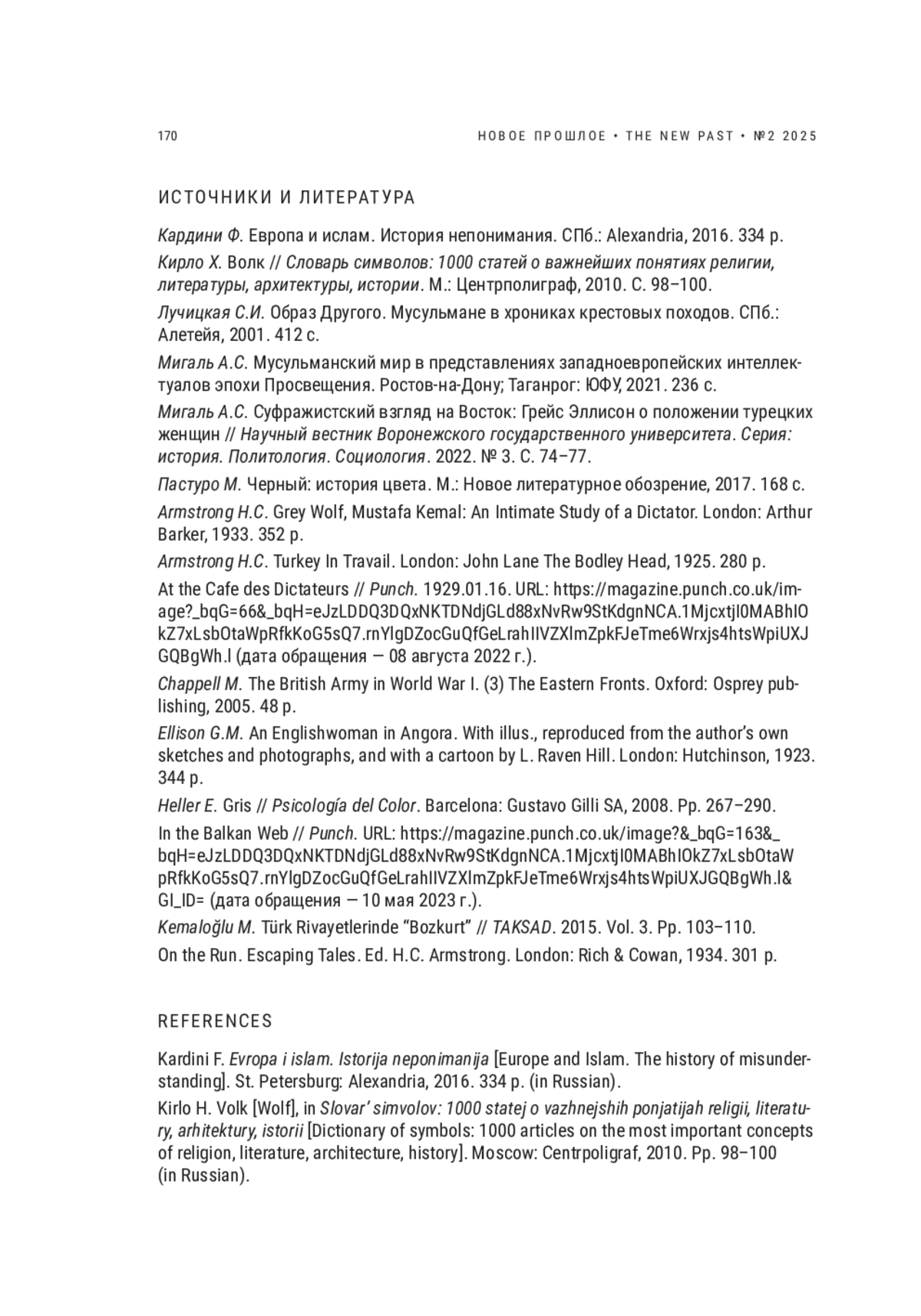 5. Мигаль А.С. Суфражистский взгляд на Восток: Грейс Эллисон о положении турецких женщин // Научный вестник Воронежского государственного университета. Серия: история. Политология. Социология. 2022. № 3. С. 74-77.