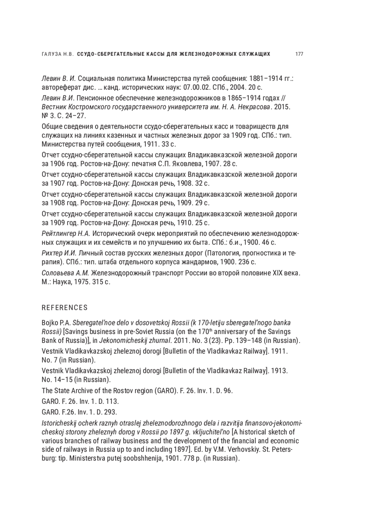 28. Levin V.I. Pensionnoe obespechenie zheleznodorozhnikov v 1865-1914 godah [Pension provision for railway workers in 1865-1914], in Vestnik Kostromskogo gosudarstvennogo universiteta im. N. A. Nekrasova. 2015. No. 3. Pp. 24-27 (in Russian).