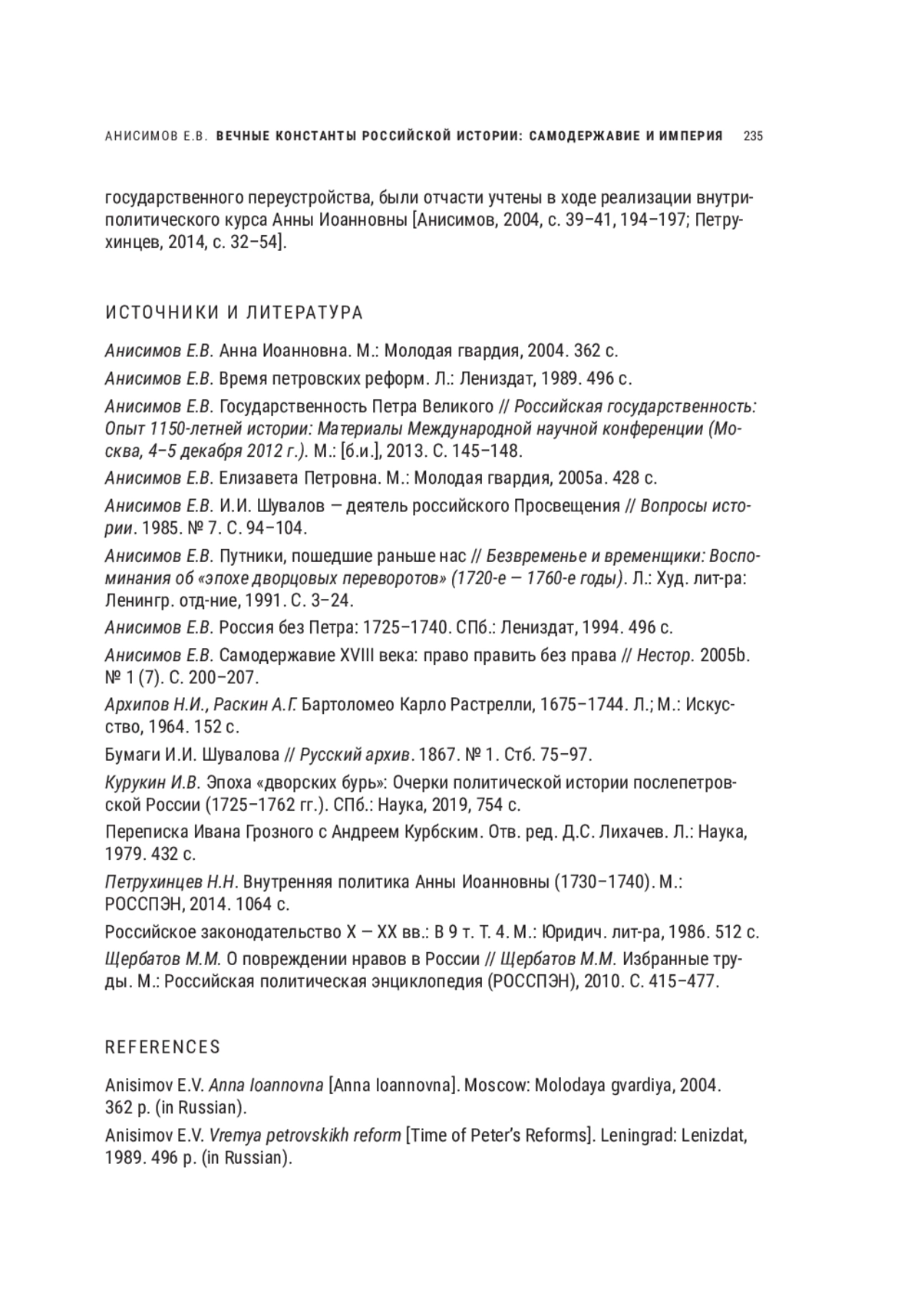 23. Anisimov E.V. Samoderzhavie XVIII veka: pravo pravit’ bez prava [Autocracy of the 18th Century: the Right to Rule Without Law], in Nestor. 2005b. No. 1 (7). Рр. 200-207 (in Russian).