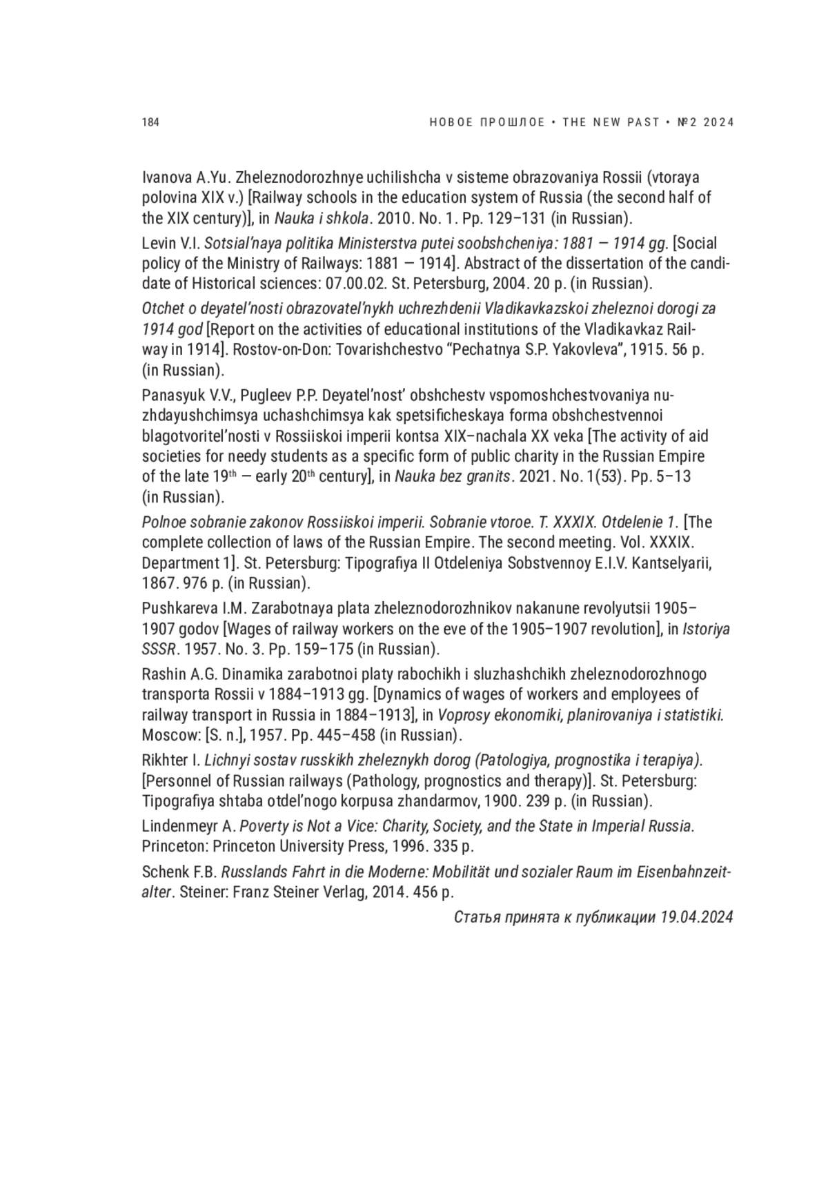 20. Schenk F.B. Russlands Fahrt in die Moderne: Mobilität und sozialer Raum im Eisenbahnzeitalter. Steiner: Franz Steiner Verlag, 2014. 456 p.