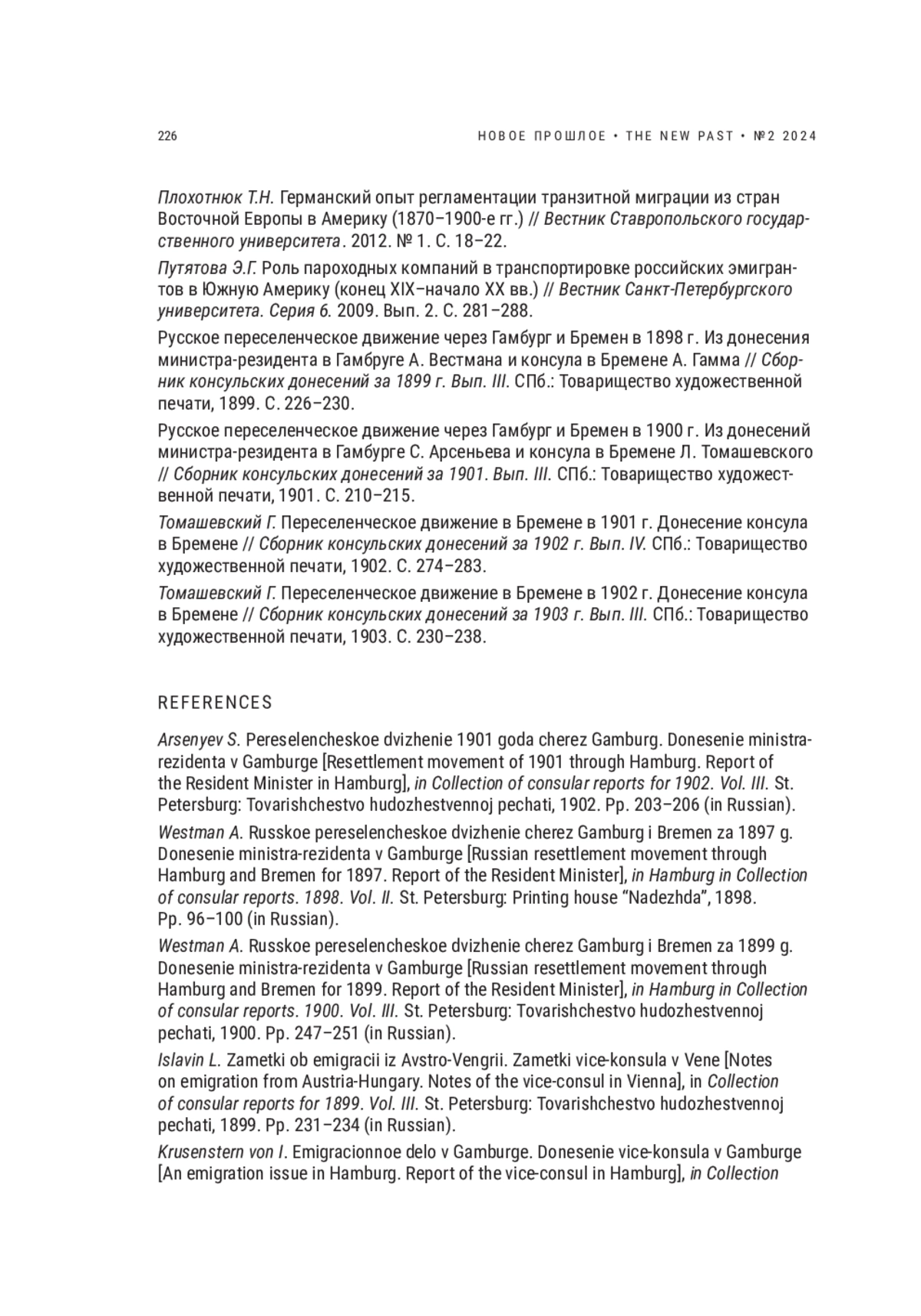 9. Плохотнюк Т.Н. Германский опыт регламентации транзитной миграции из стран Восточной Европы в Америку (1870-1900 е гг.) // Вестник Ставропольского государственного университета. 2012. № 1. С. 18-22. EDN: PAESYD
