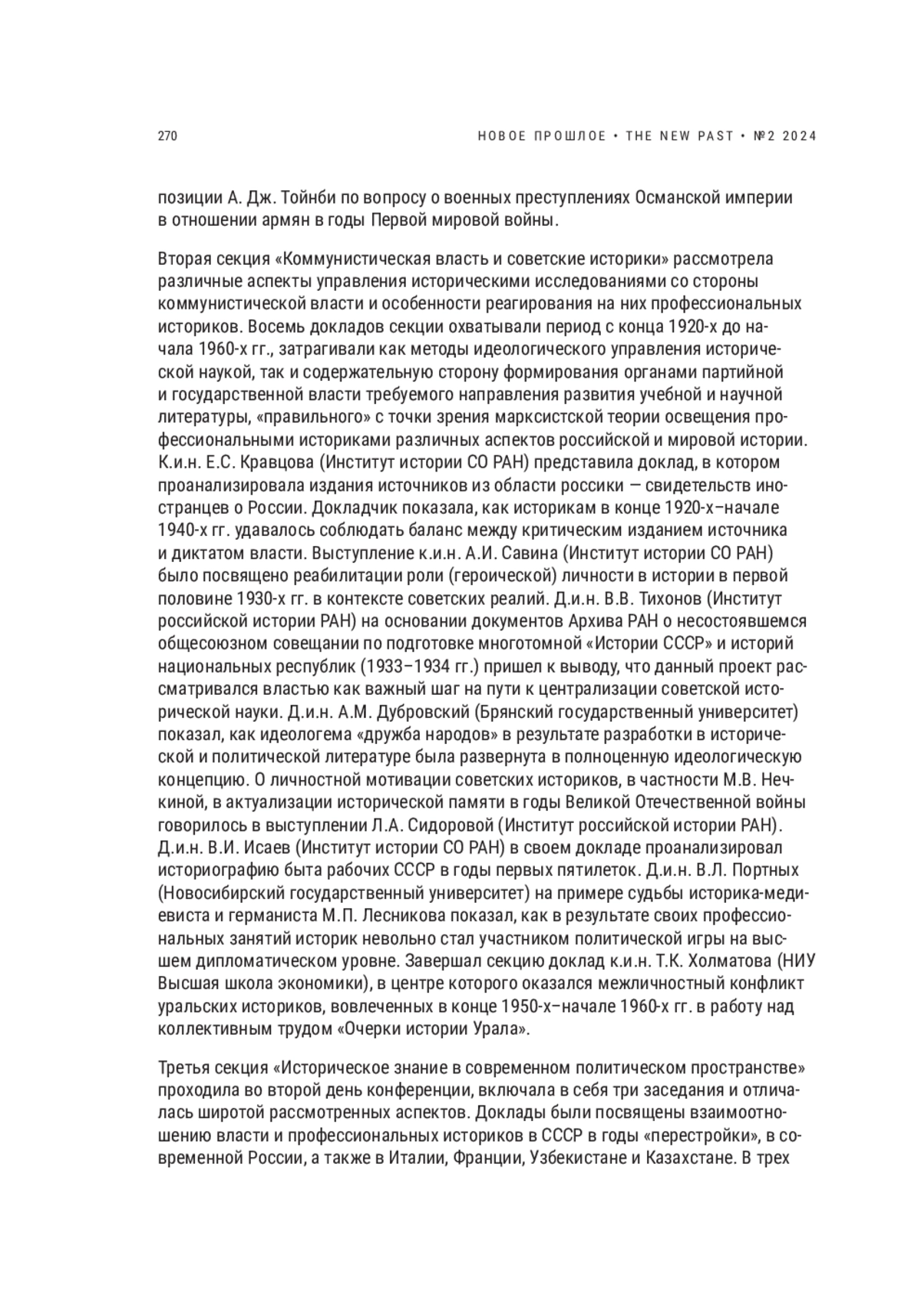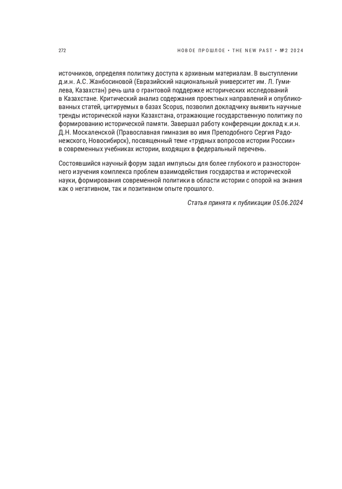 В статье представлен обзор Всероссийской научной конференции «Власть и историки: проблемы взаимодействия в контексте формирования исторической памяти», которая прошла в Новосибирске 23–24 апреля 2024 г. Конференция была организована Институтом истории Сибирского отделения РАН и редакцией электронного научного журнала «Исторический курьер», в ее работе приняли участие 26 исследователей из разных регионов Российской Федерации и ближнего зарубежья. Целью конференции являлось обсуждение исторического опыта и проблем взаимоотношений между властью и профессиональными историками, связанных с формированием исторической памяти. Участники обсудили меры по организации государством исторических исследований на разных этапах имперского периода российской истории, рассмотрели различные аспекты управления историческими исследованиями со стороны коммунистической власти и особенности реагирования историков, а также анализировали направления взаимодействия современных профессиональных исследователей с властью и общественностью в России, Италии, Франции, Узбекистане и Казахстане