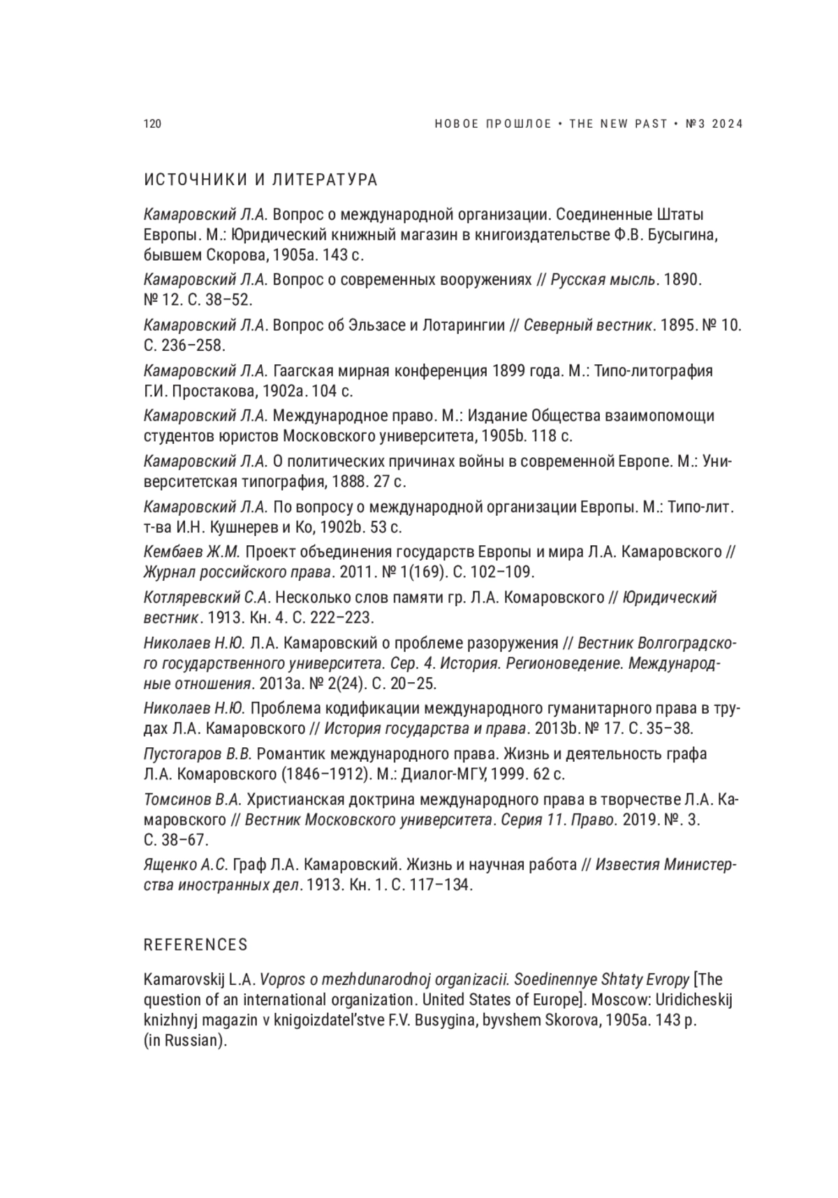 8. Кембаев Ж.М. Проект объединения государств Европы и мира Л.А. Камаровского // Журнал российского права. 2011. № 1(169). С. 102-109. EDN: NDQQDN
