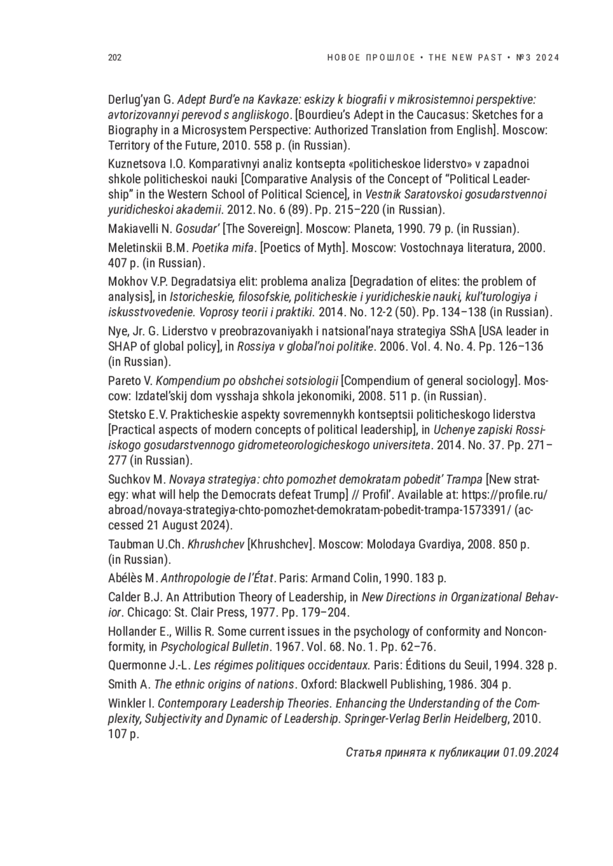 6. Кузнецова И.О. Компаративный анализ концепта “политическое лидерство” в западной школе политической науки // Вестник Саратовской государственной юридической академии. 2012. № 6 (89). С. 215-220.