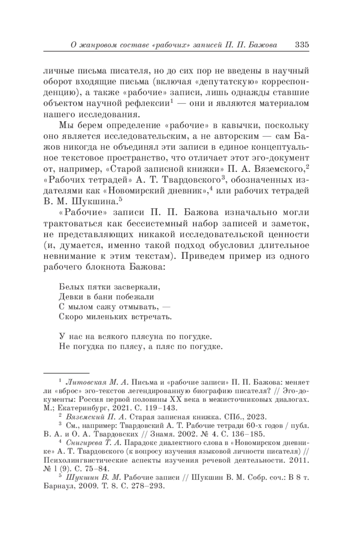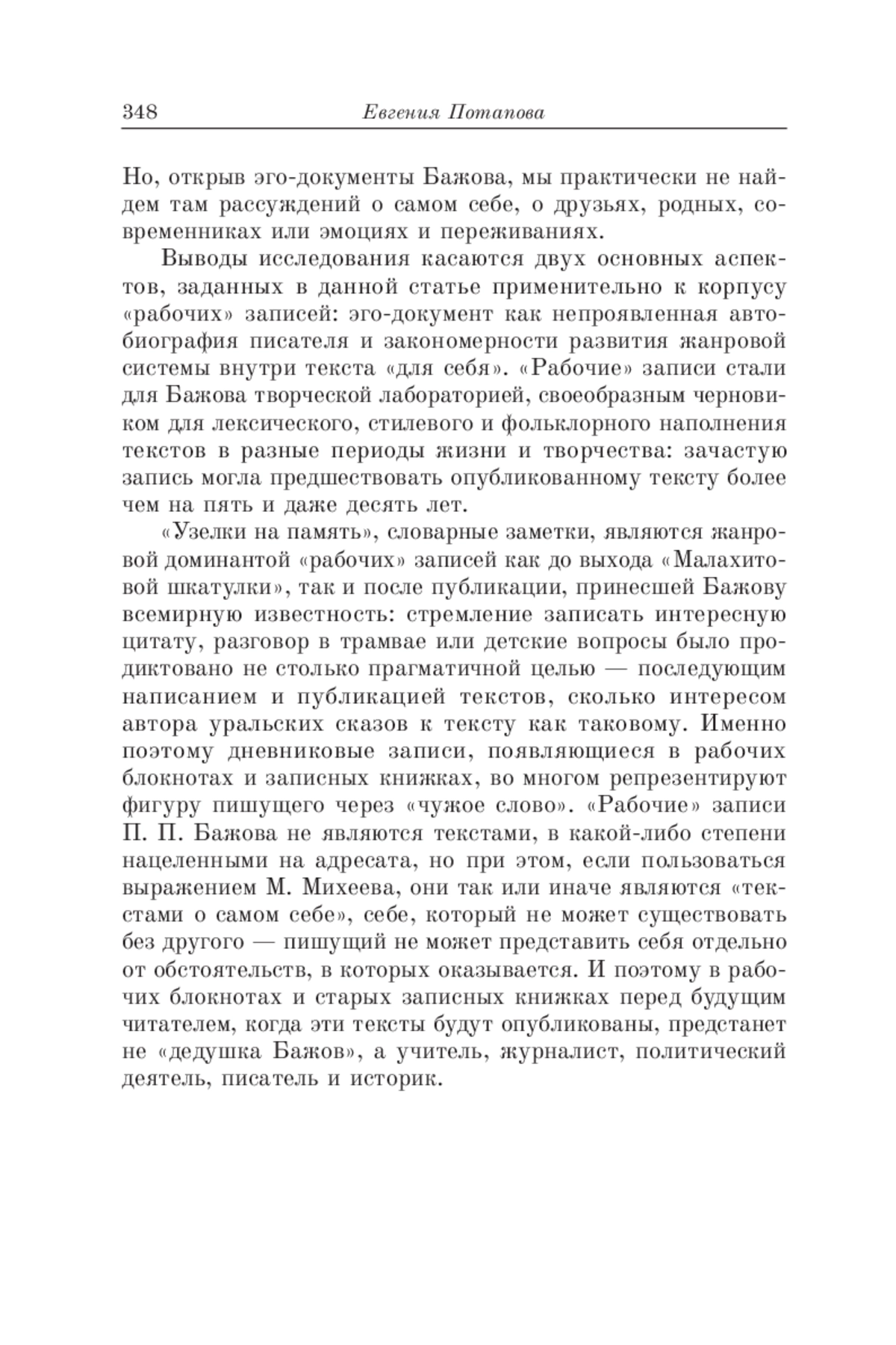 5. Литовская М. А. Письма и “рабочие записи” П. П. Бажова: меняет ли “вброс” эго-текстов легендированную биографию писателя? // Эго-документы: Россия первой половины ХХ века в межисточниковых диалогах. М.; Екатеринбург, 2021. С. 119-143.