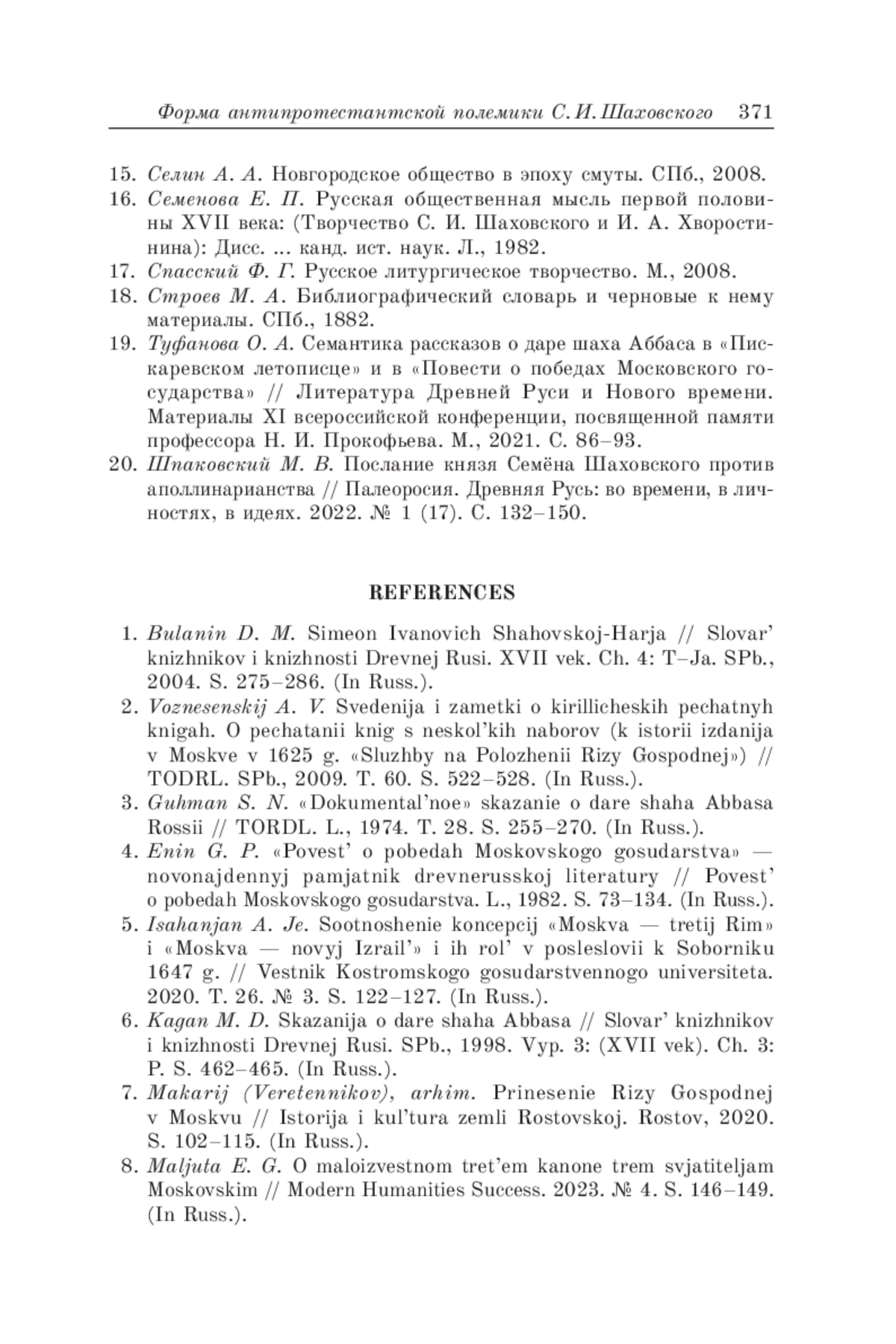 МАЛЮТА Е. Г. НЕОБЫЧНАЯ ФОРМА АНТИПРОТЕСТАНТСКОЙ ПОЛЕМИКИ С. И. ШАХОВСКОГО // ЛЕТНЯЯ ШКОЛА ПО РУССКОЙ ЛИТЕРАТУРЕ. 2024. № 4, ТОМ 20