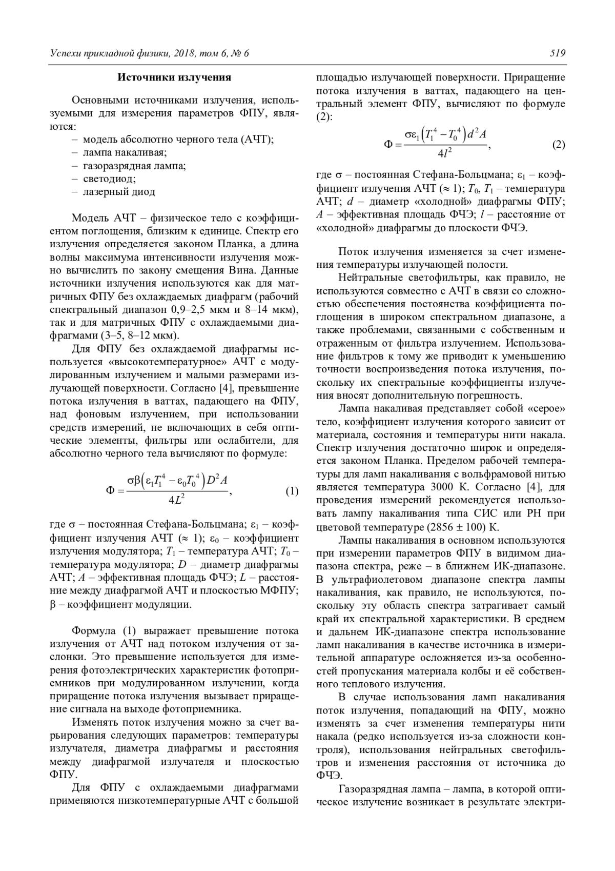 The summary list of the articles published in Uspekhi Prikladnoi Fiziki in 2018 550